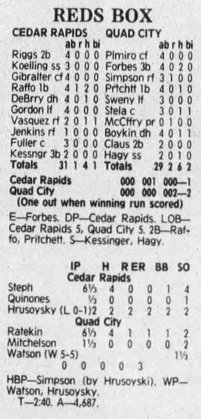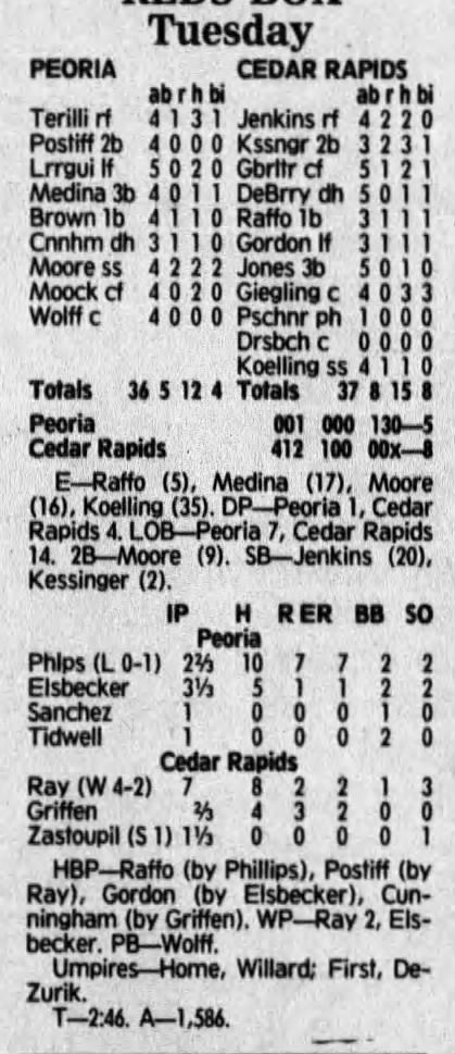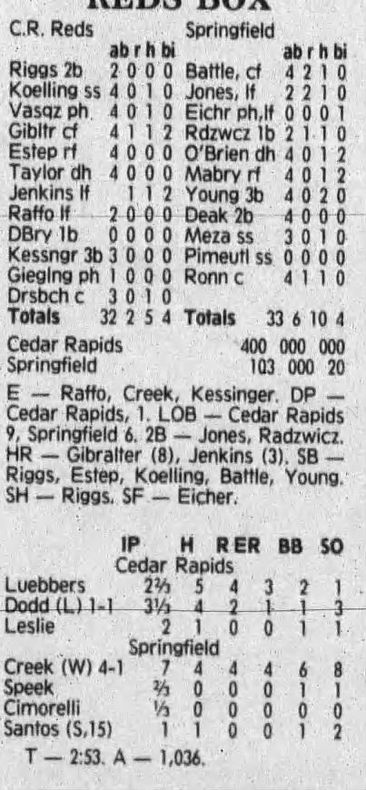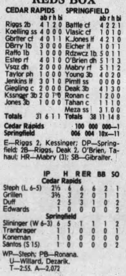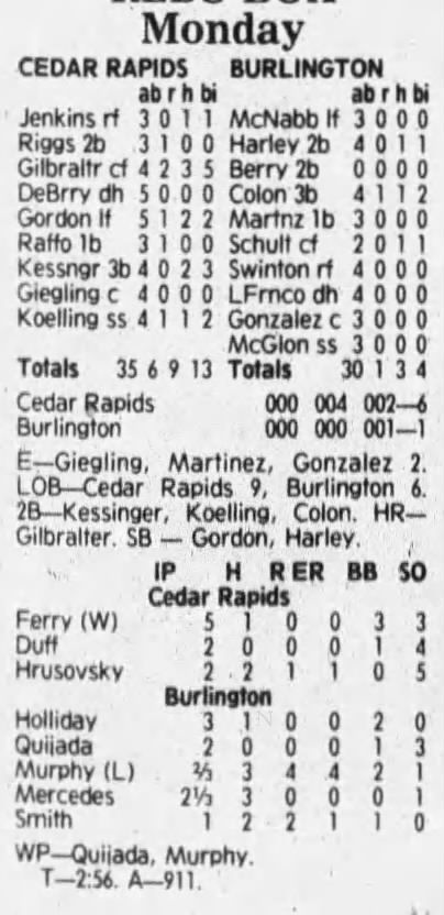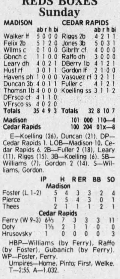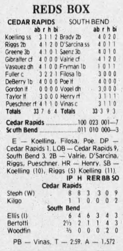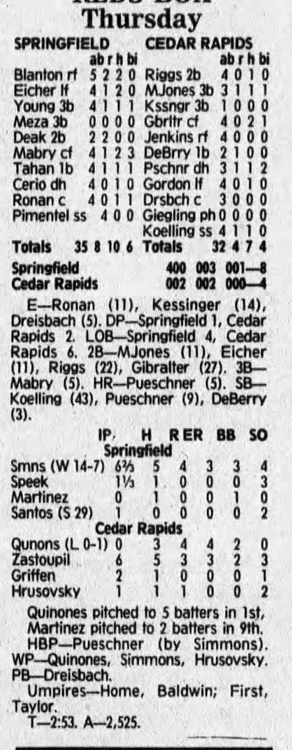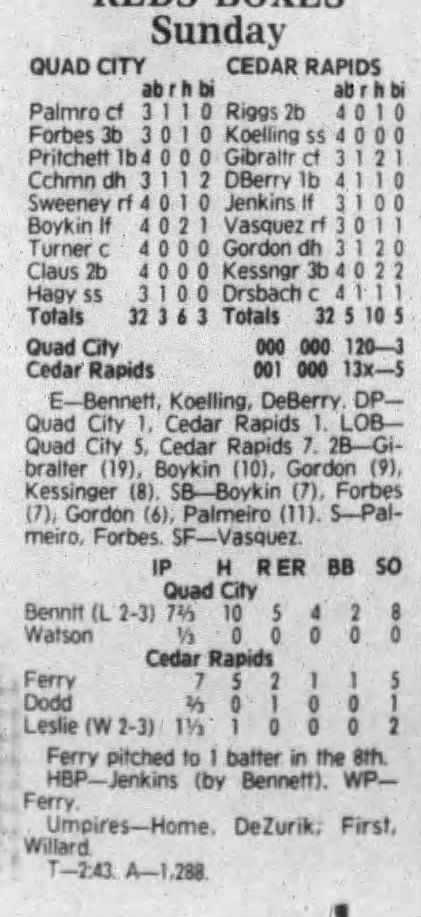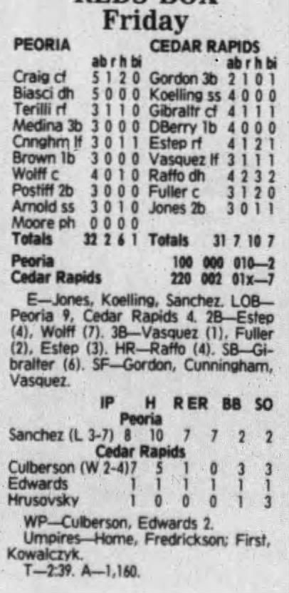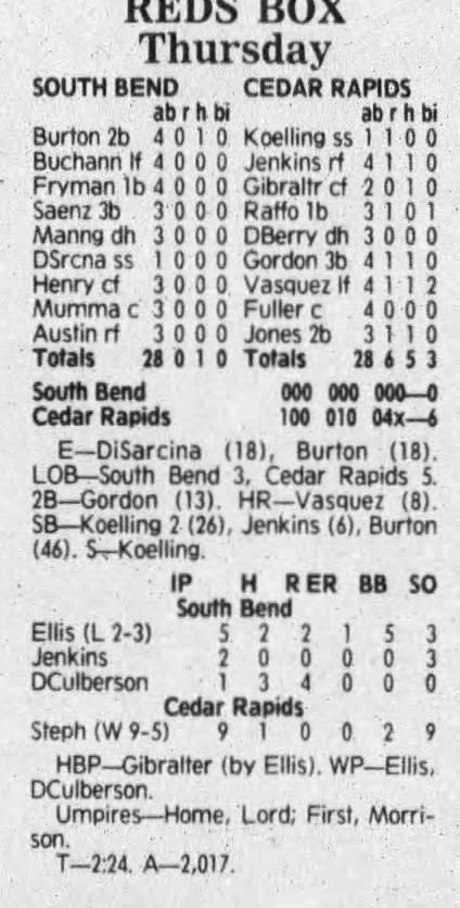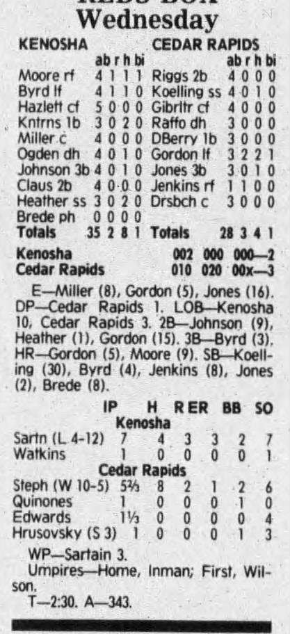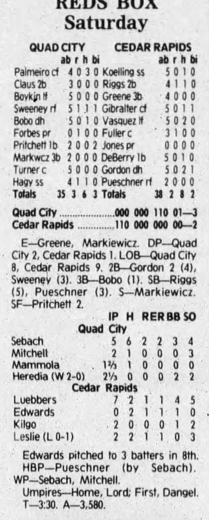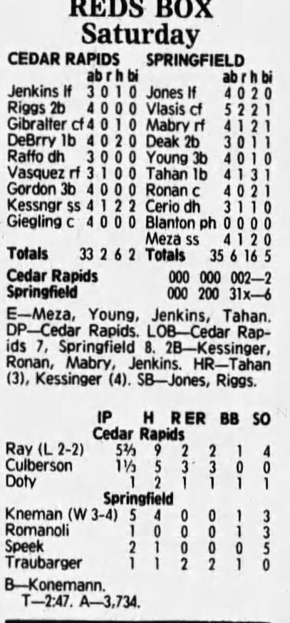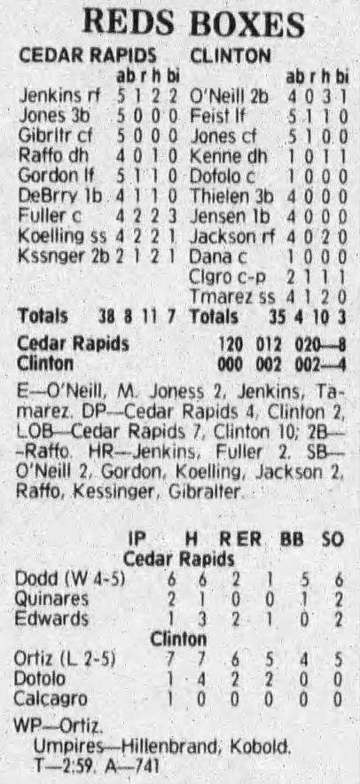 1992 Cedar Rapiids Reds box scores