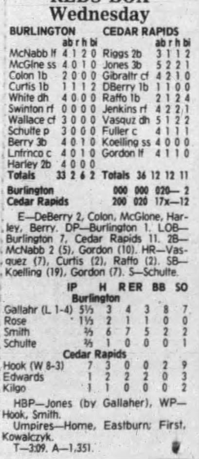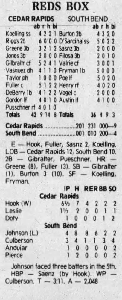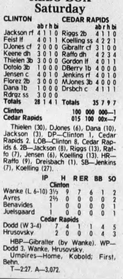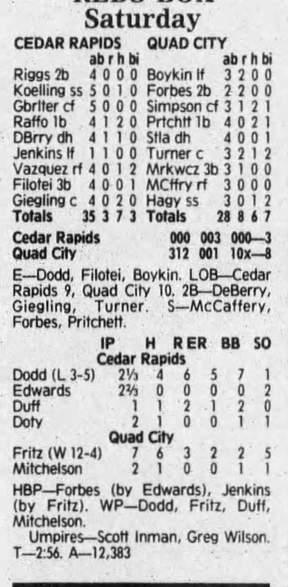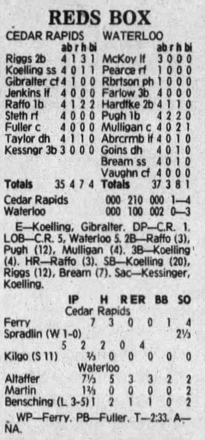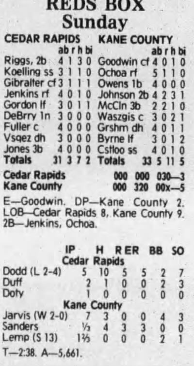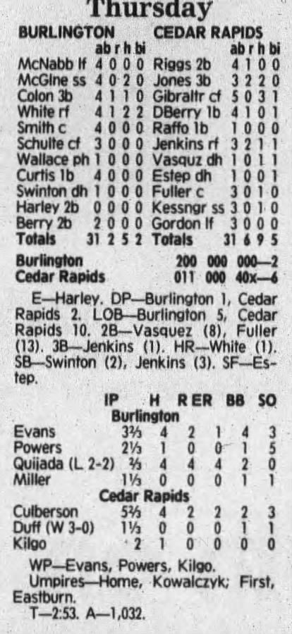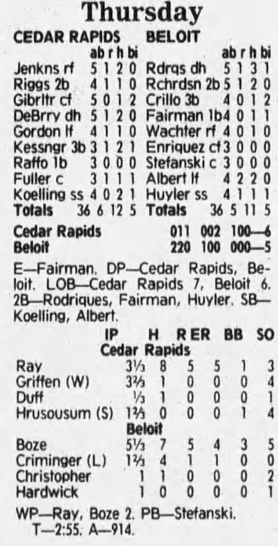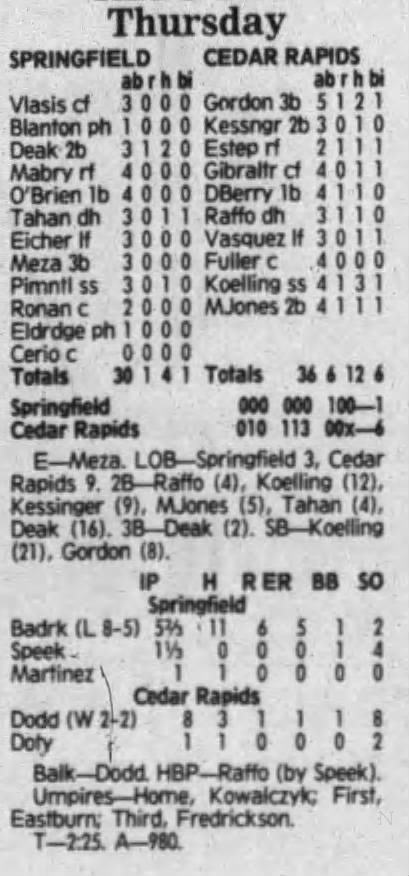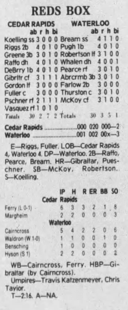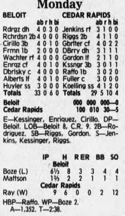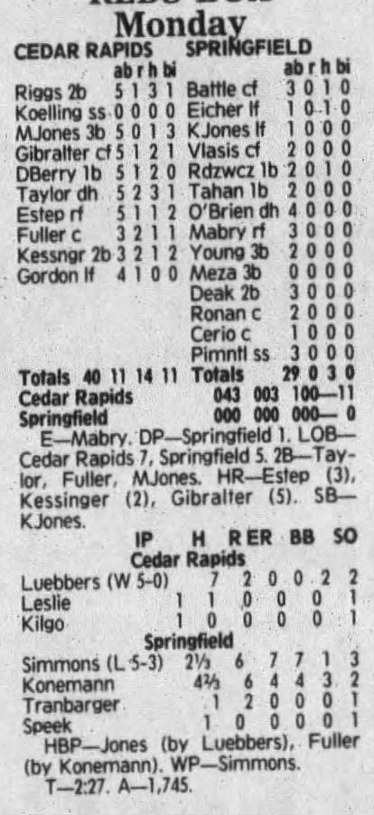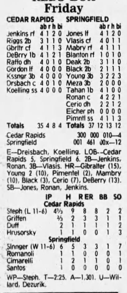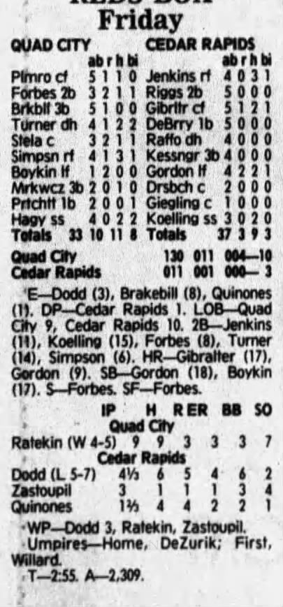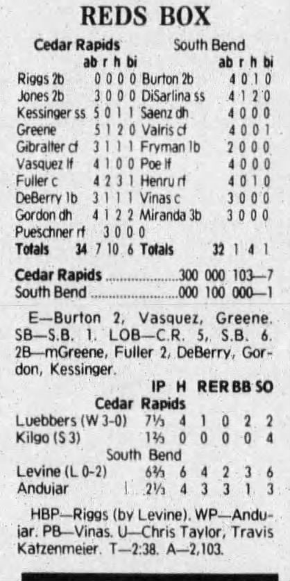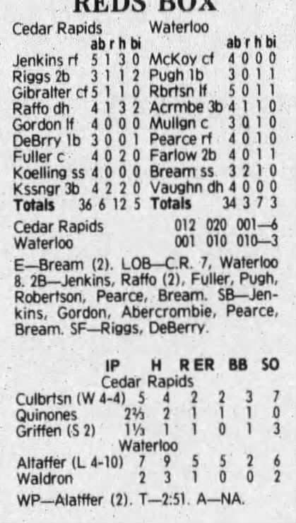 1992 Cedar Rapiids Reds box scores