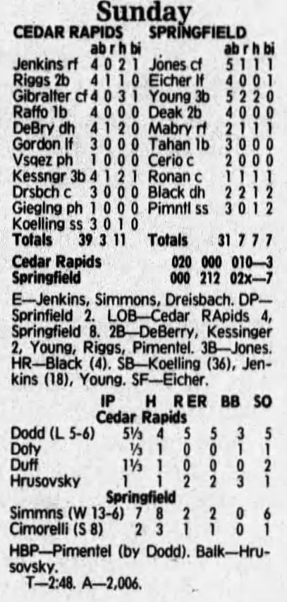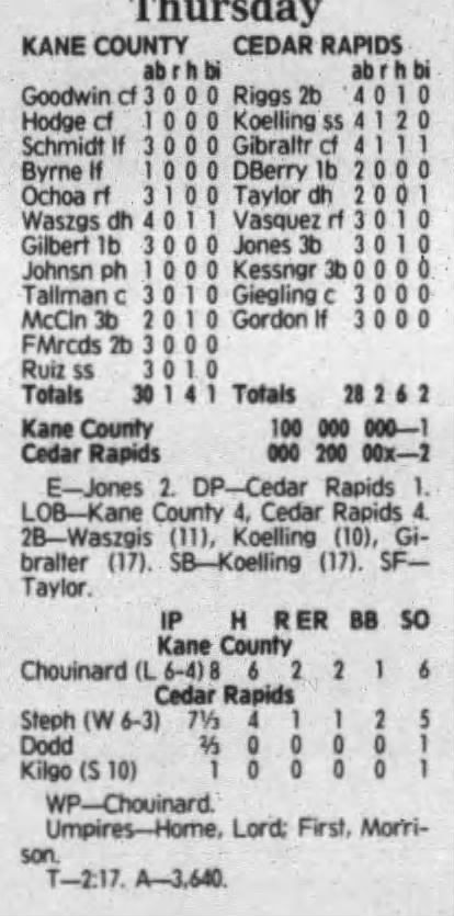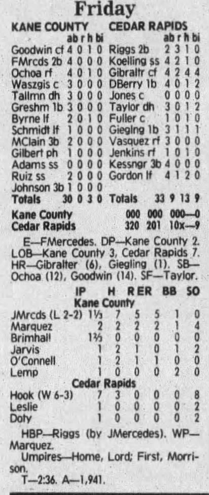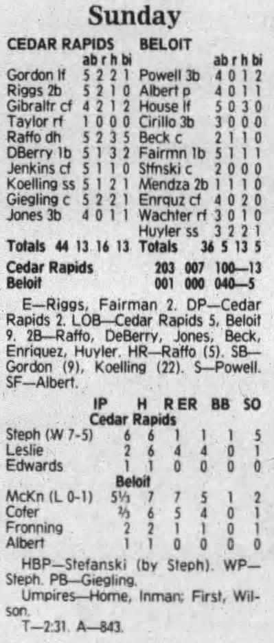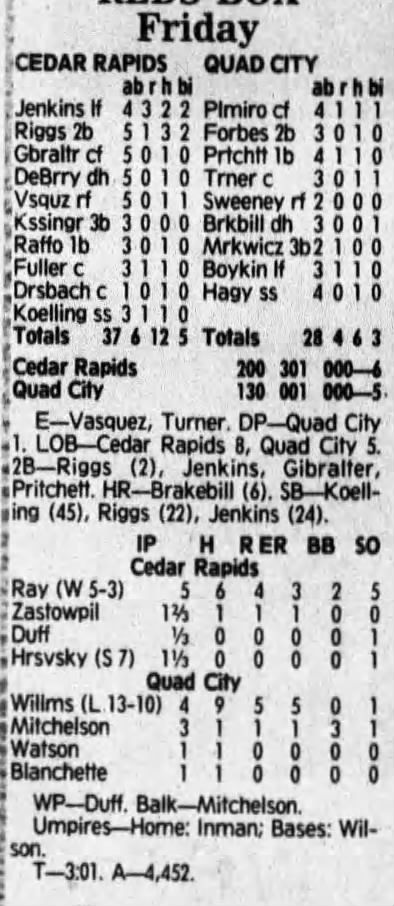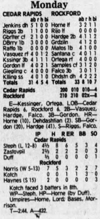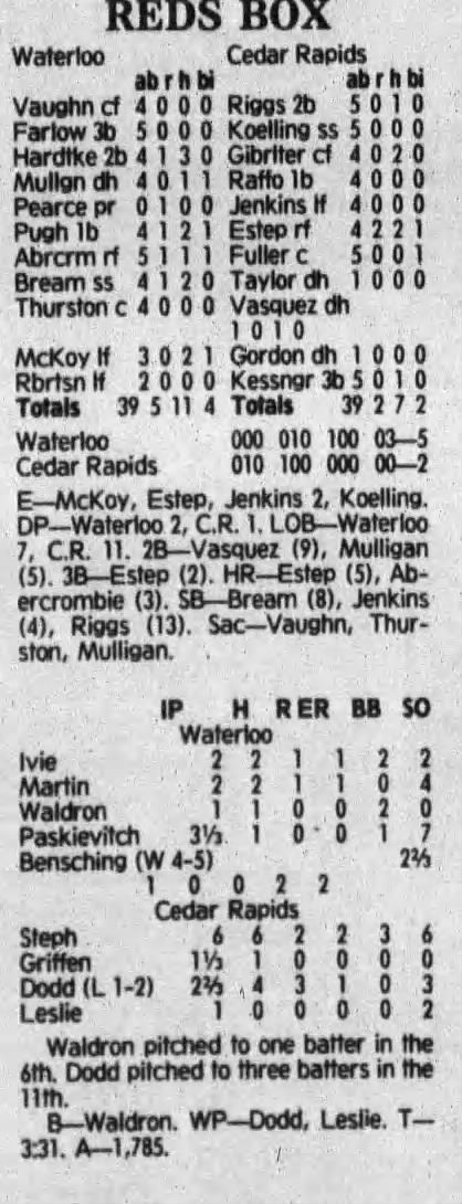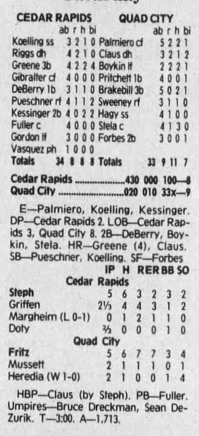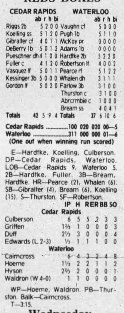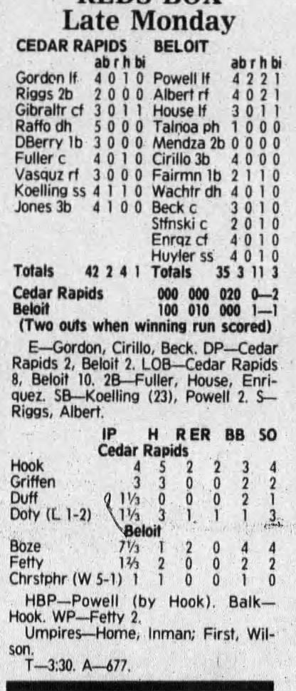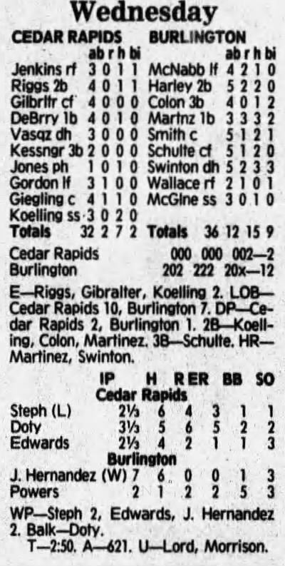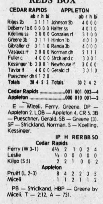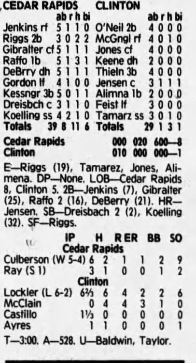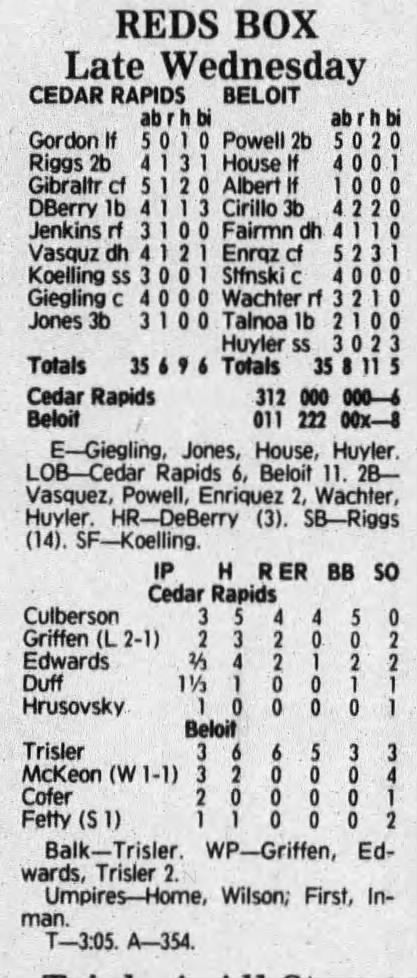 1992 Cedar Rapiids Reds box scores