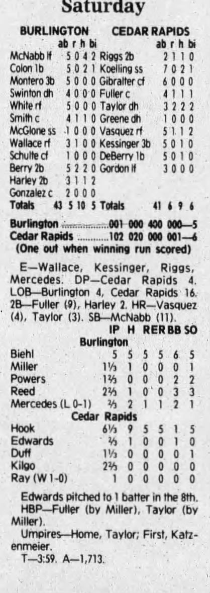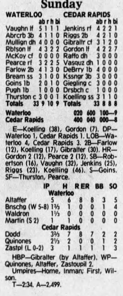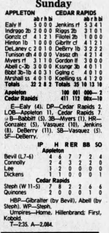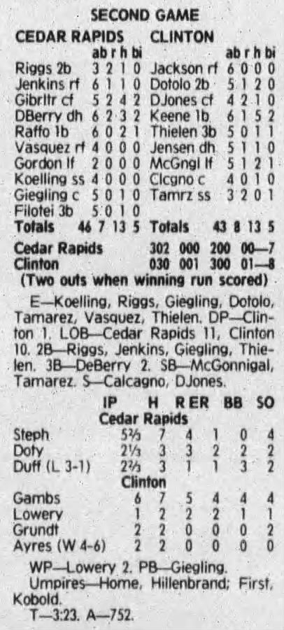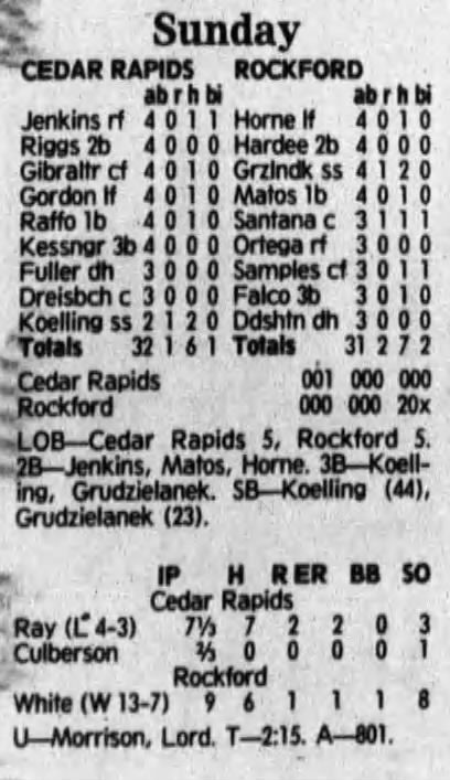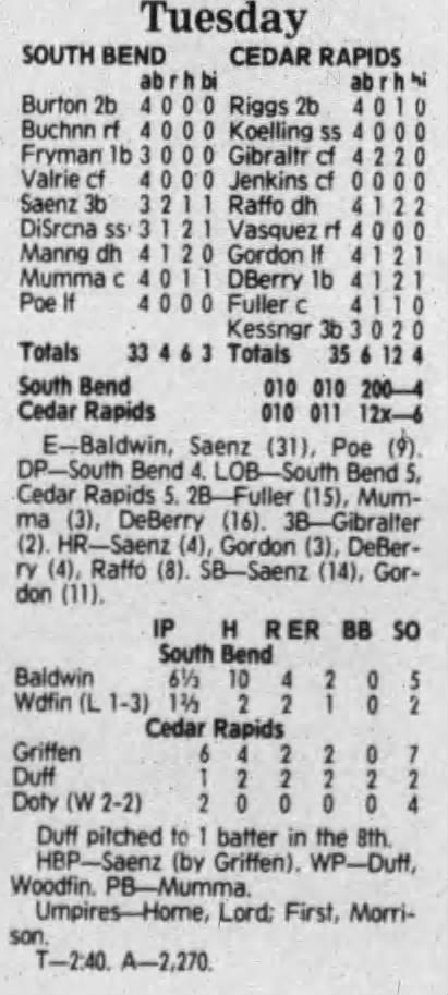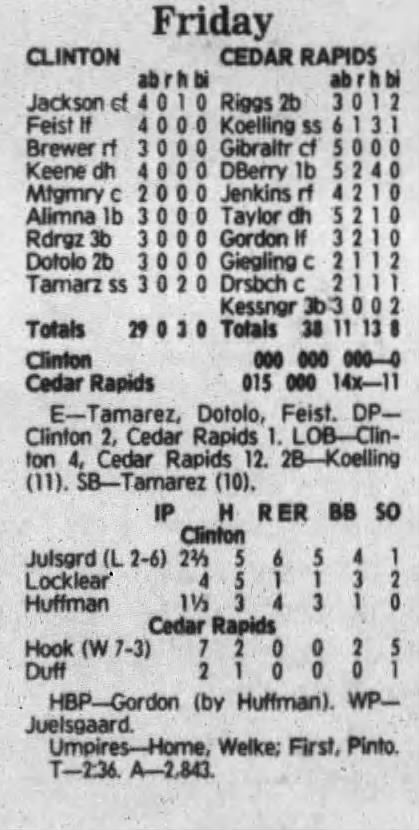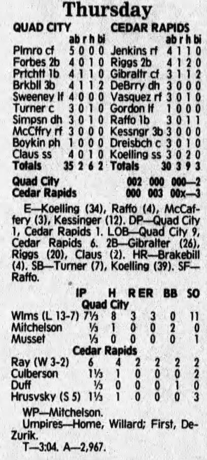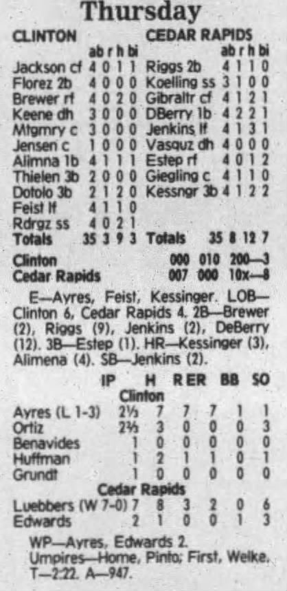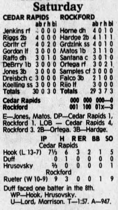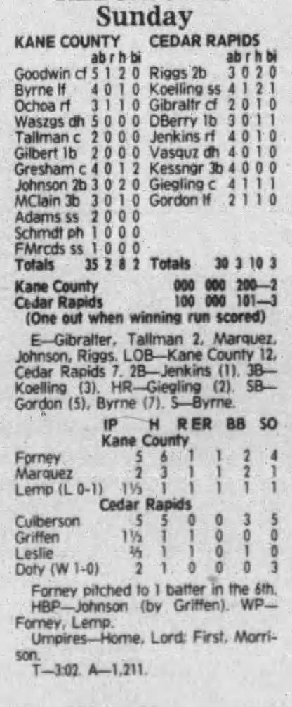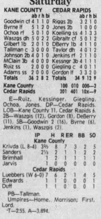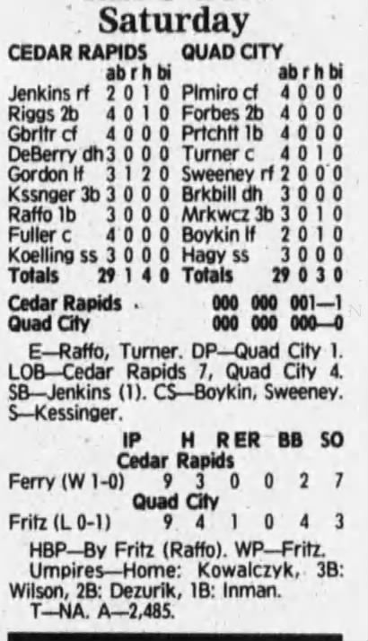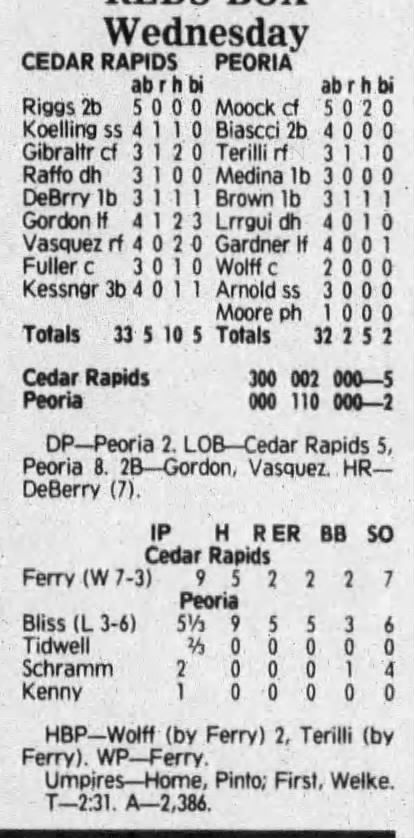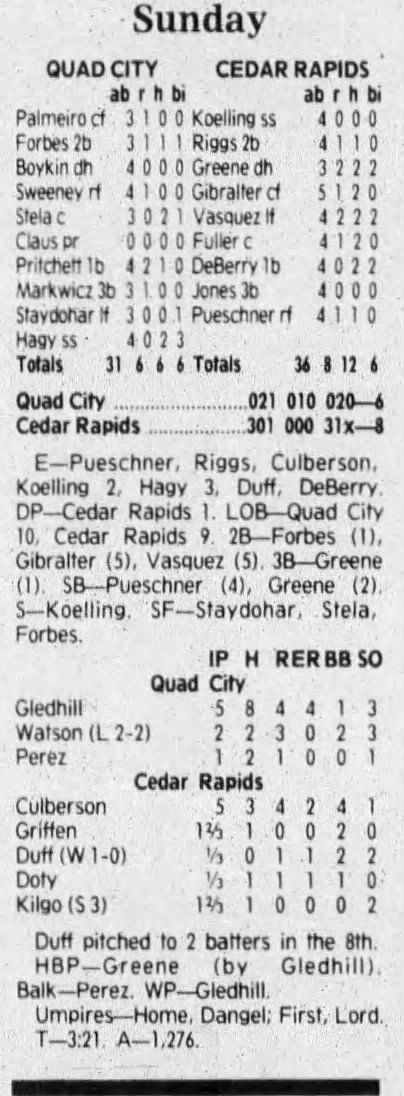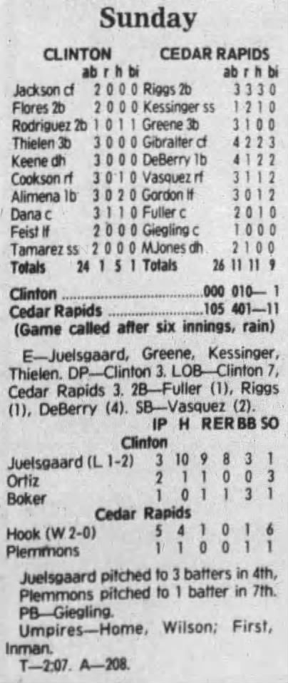 1992 Cedar Rapiids Reds box scores