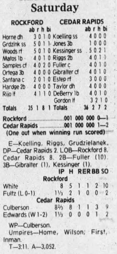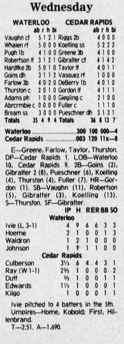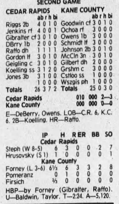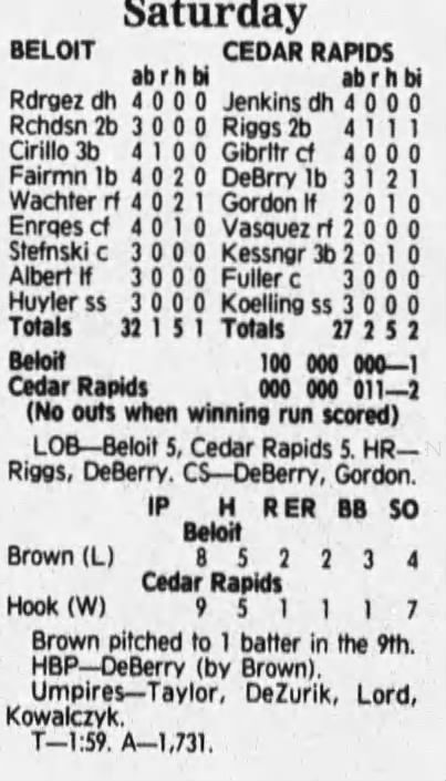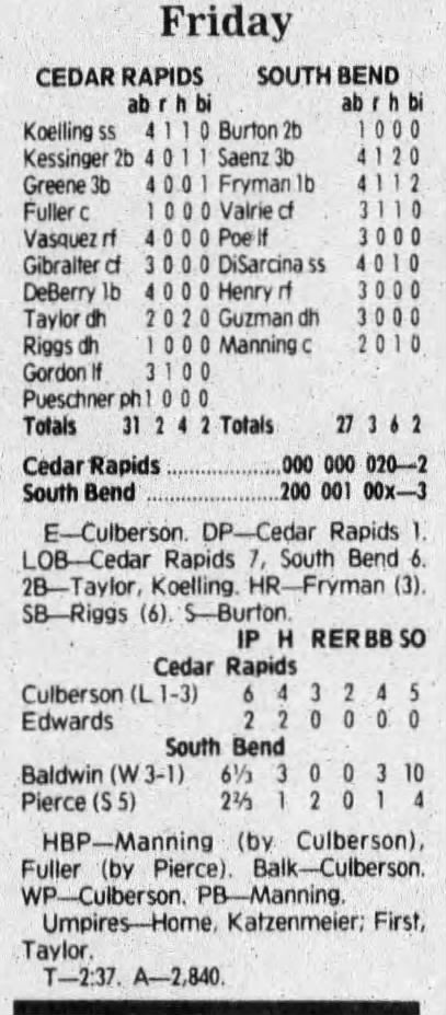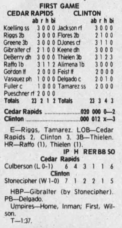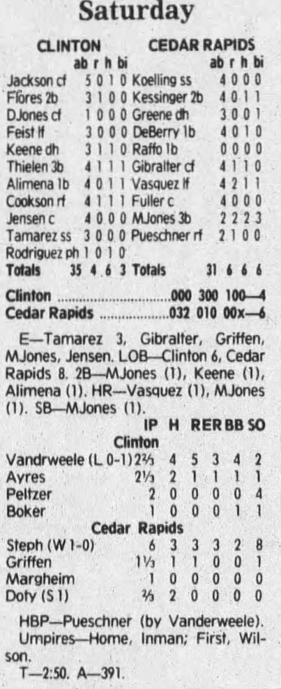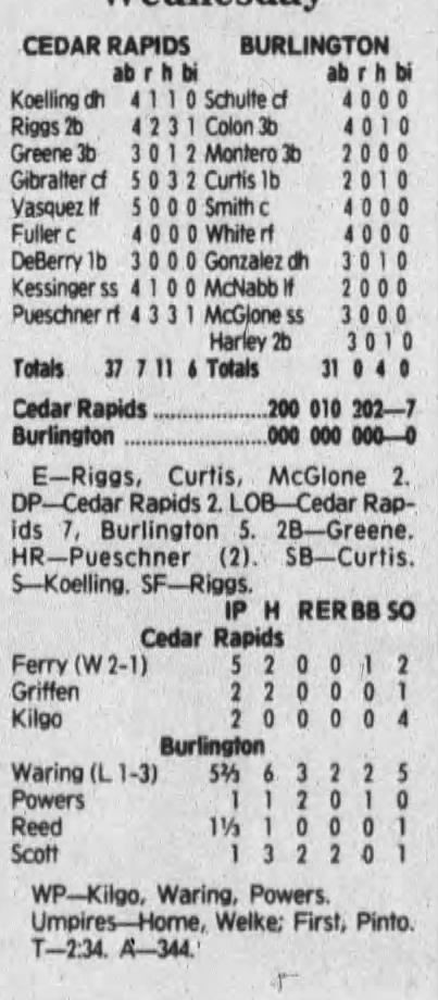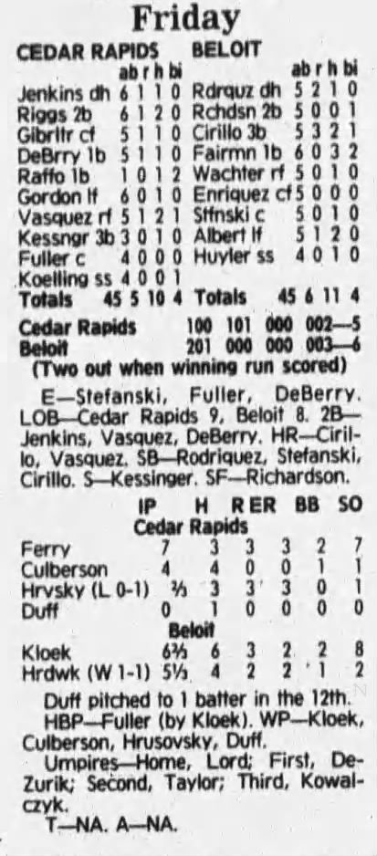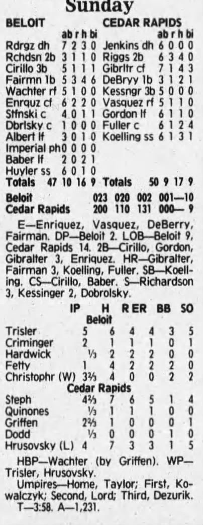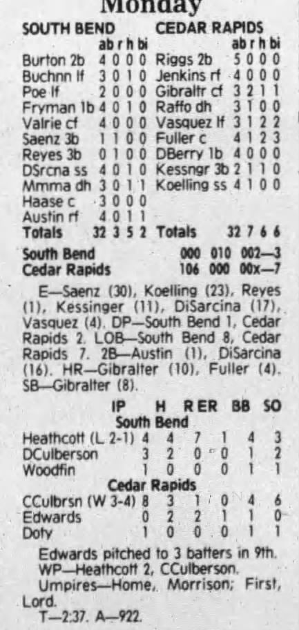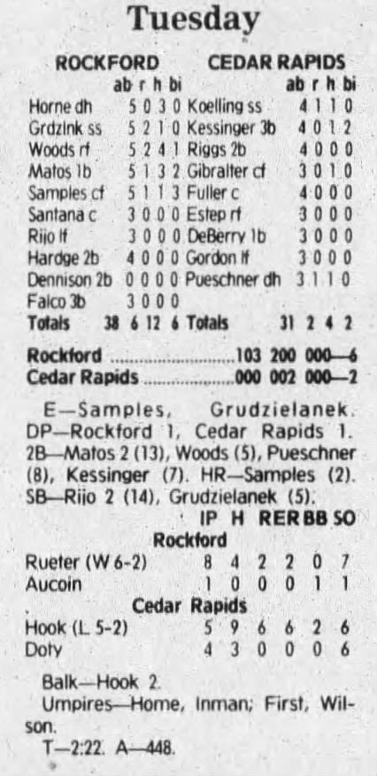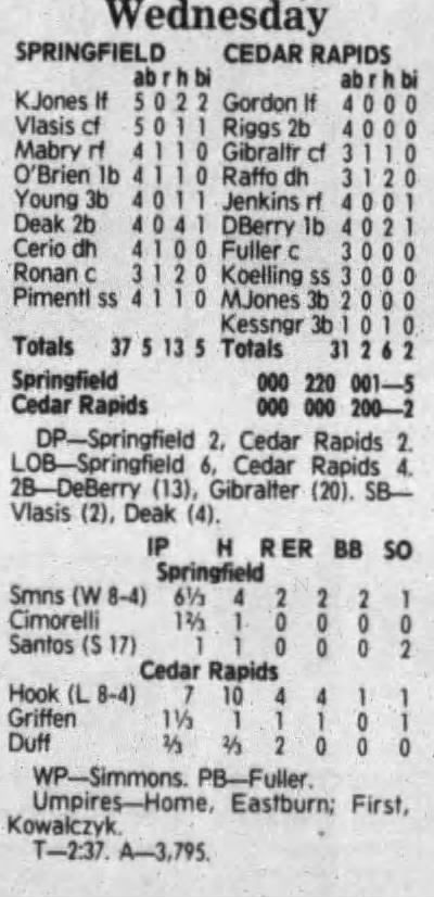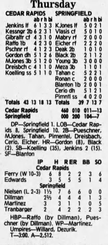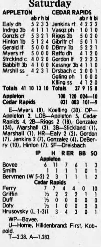 1992 Cedar Rapiids Reds box scores