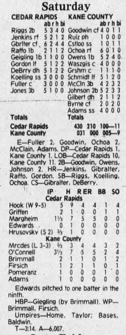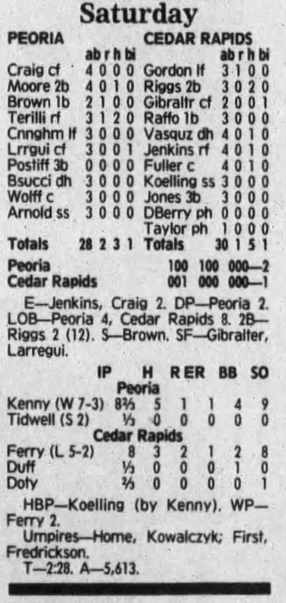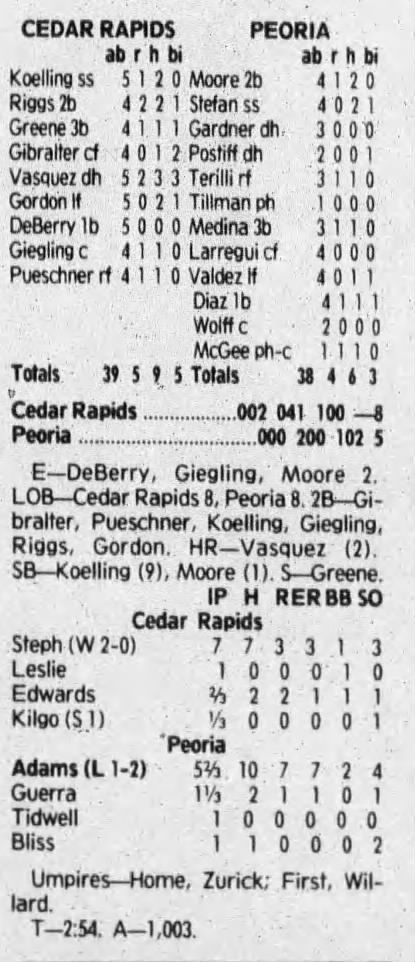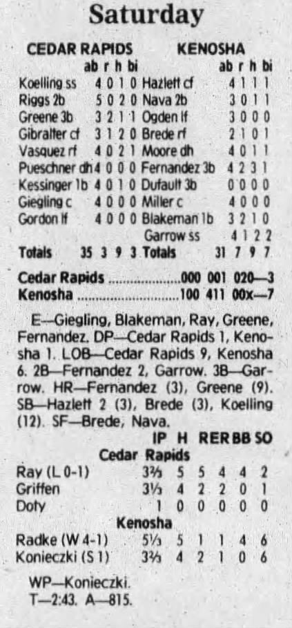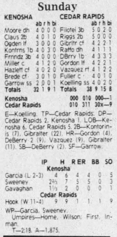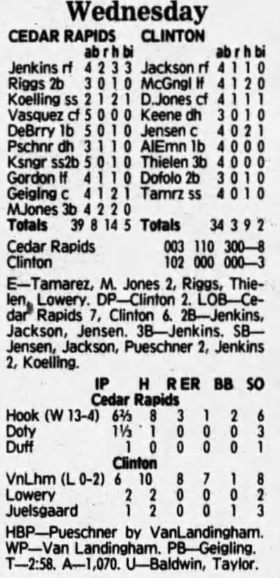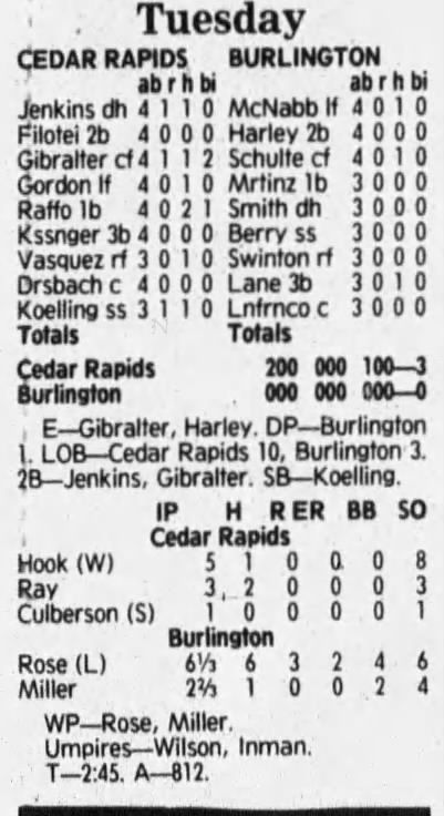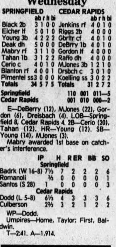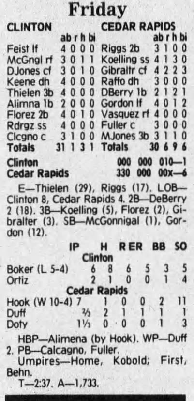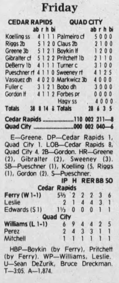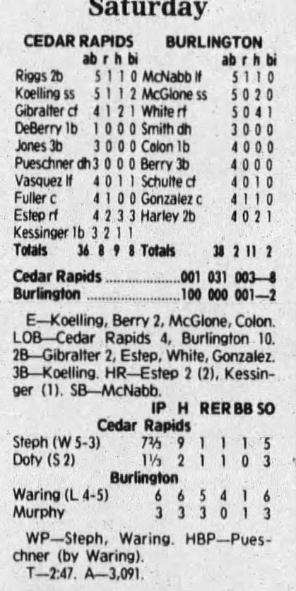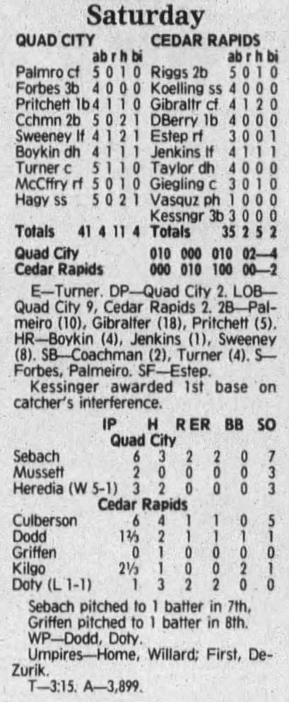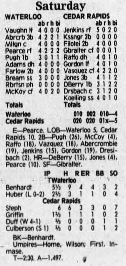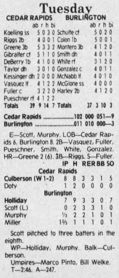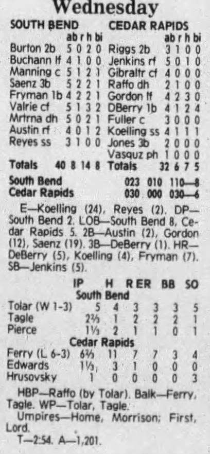 1992 Cedar Rapiids Reds box scores