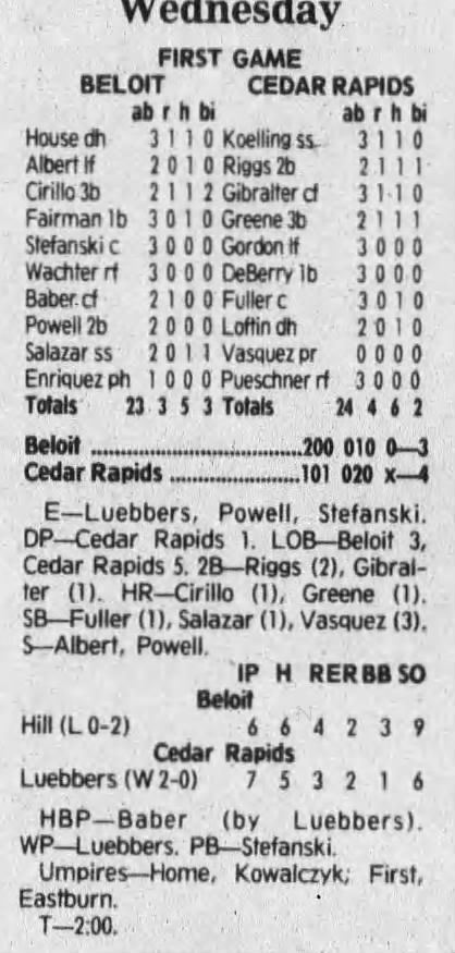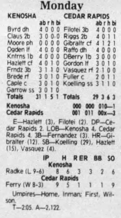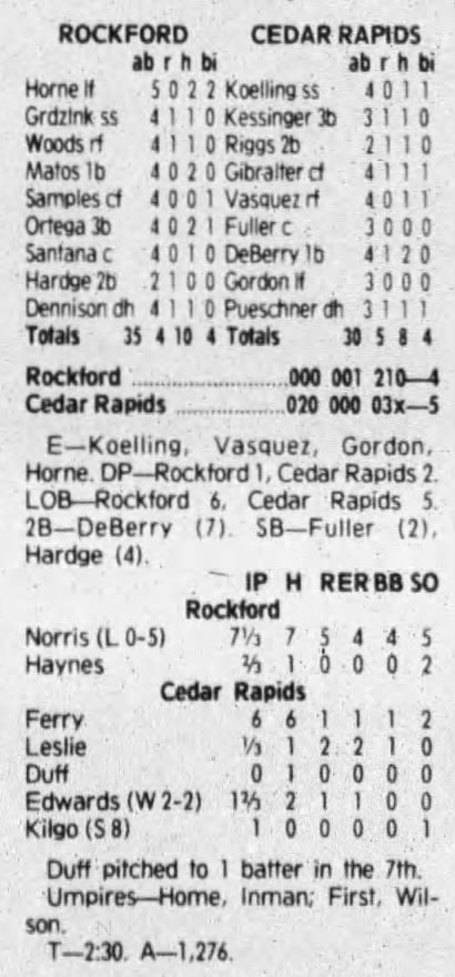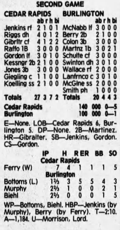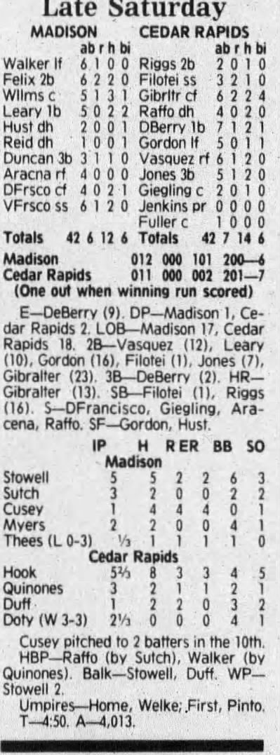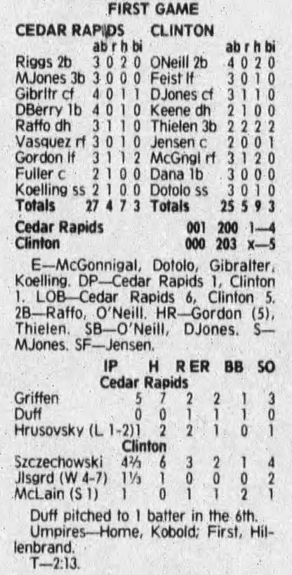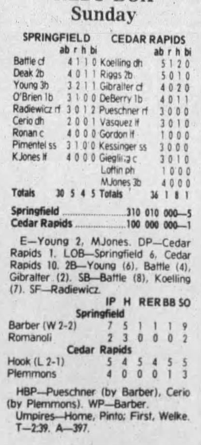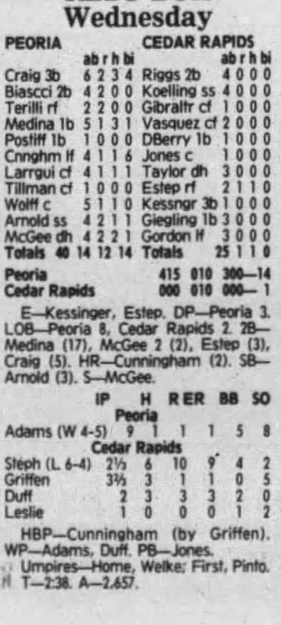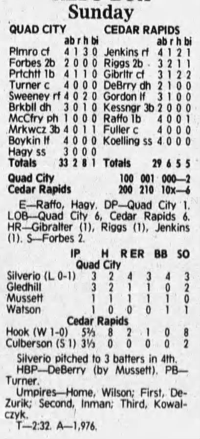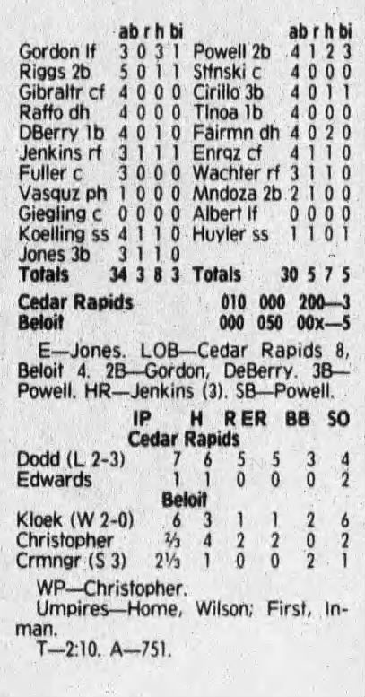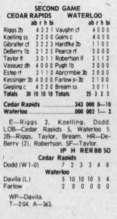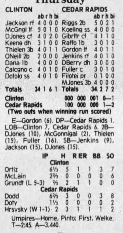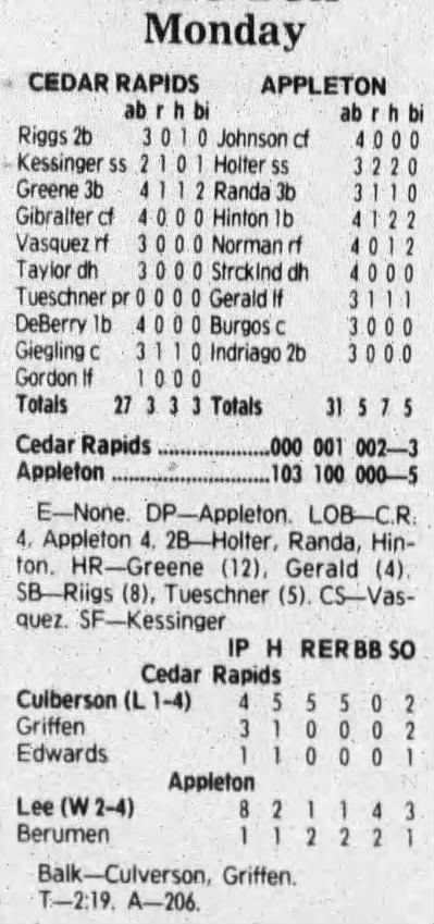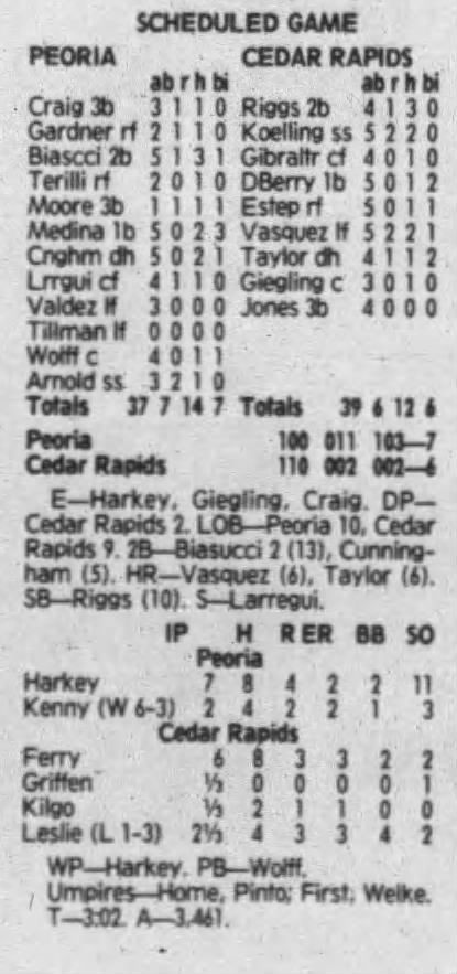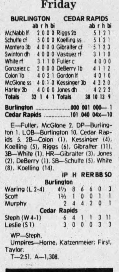 1992 Cedar Rapiids Reds box scores