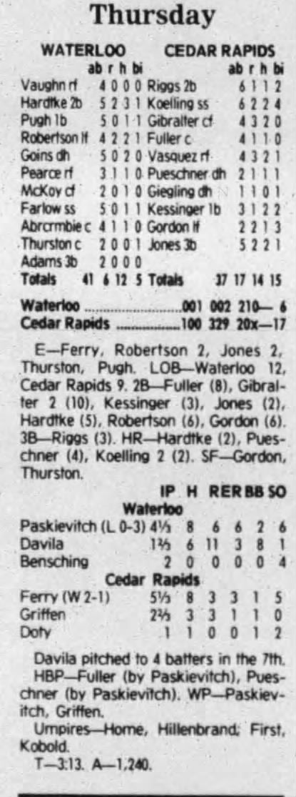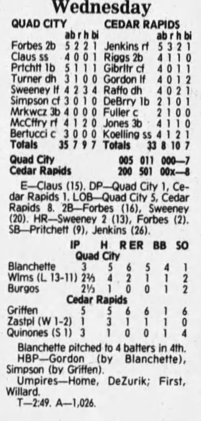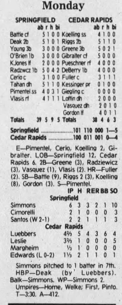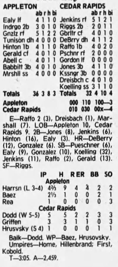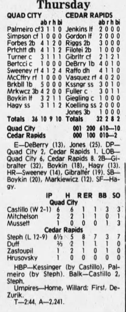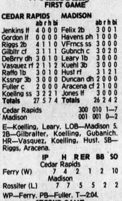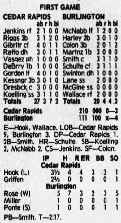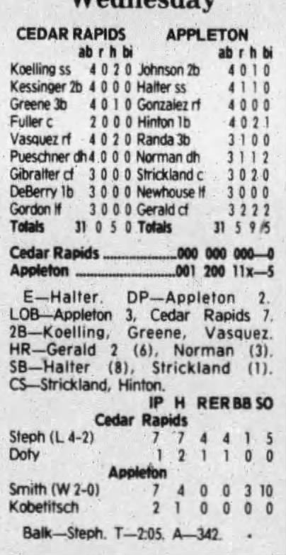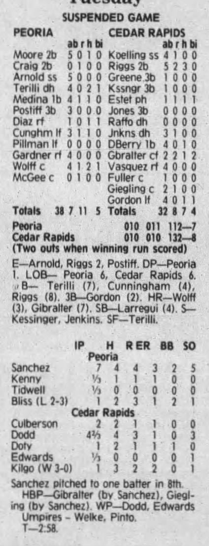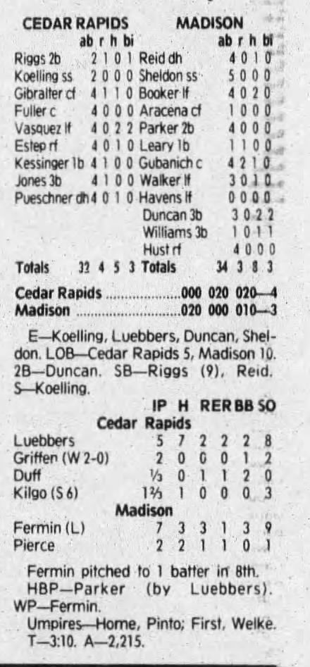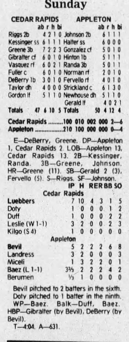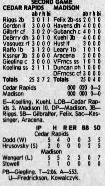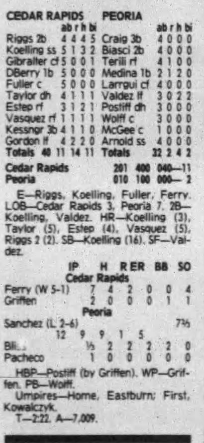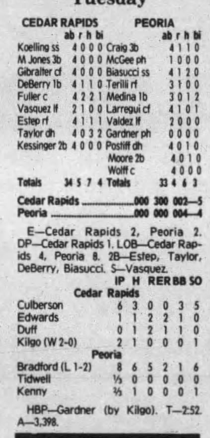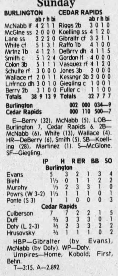 1992 Cedar Rapiids Reds box scores