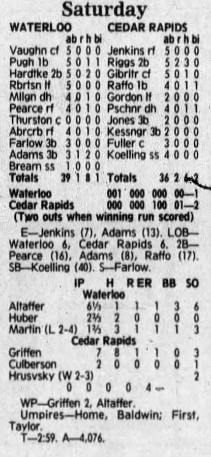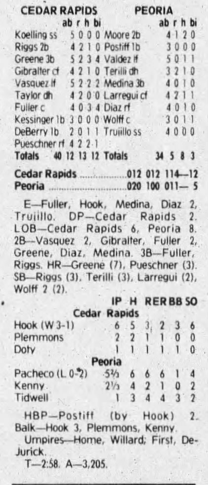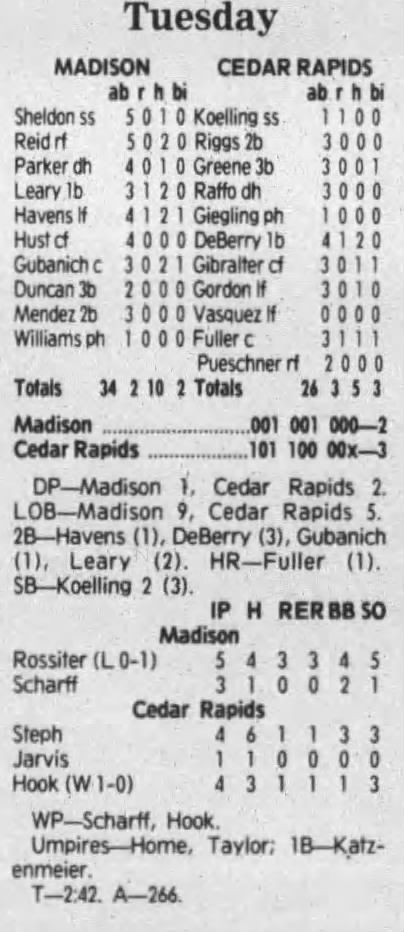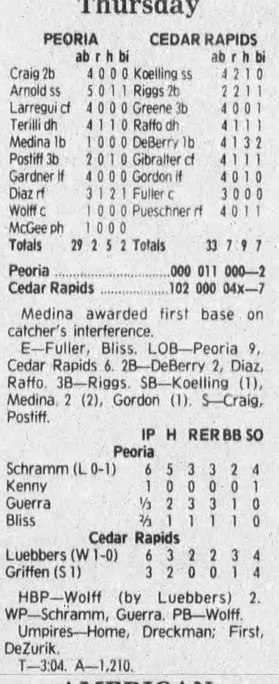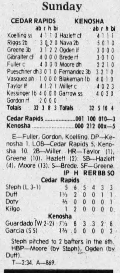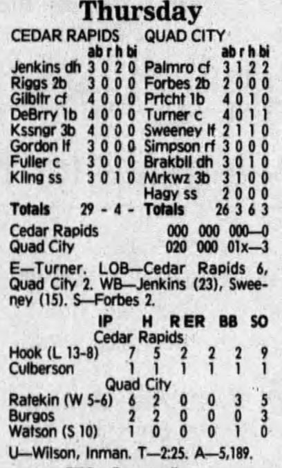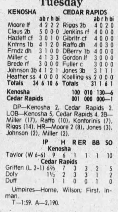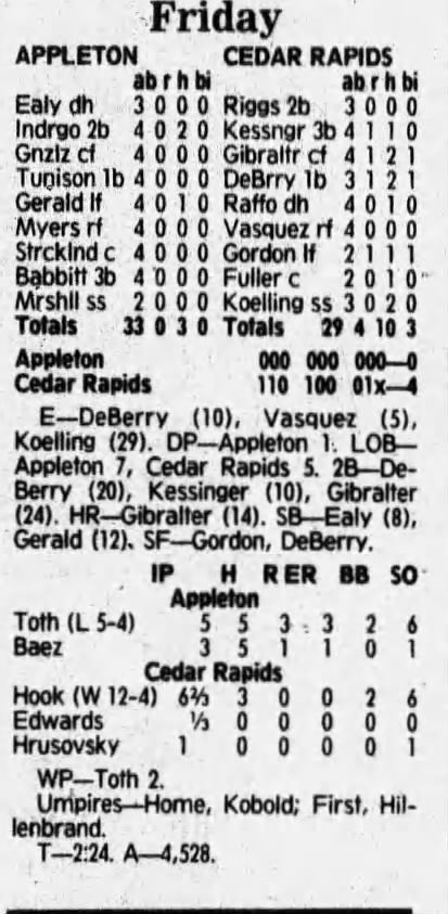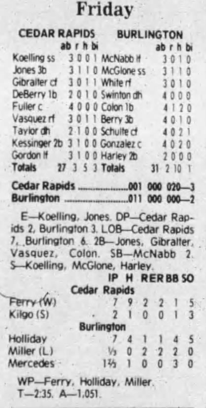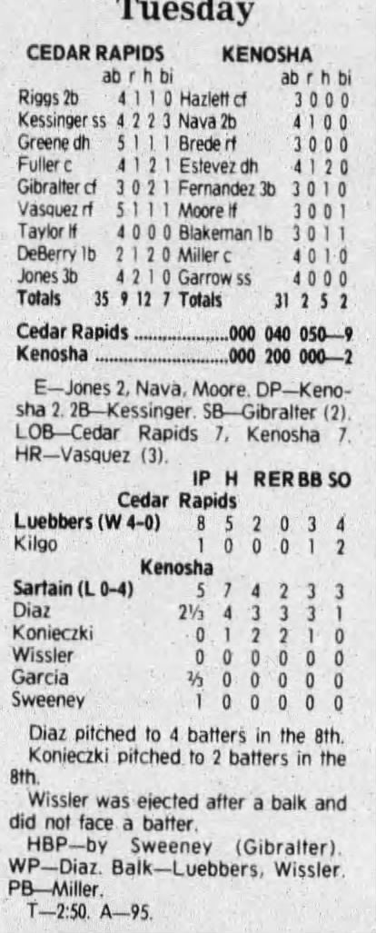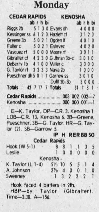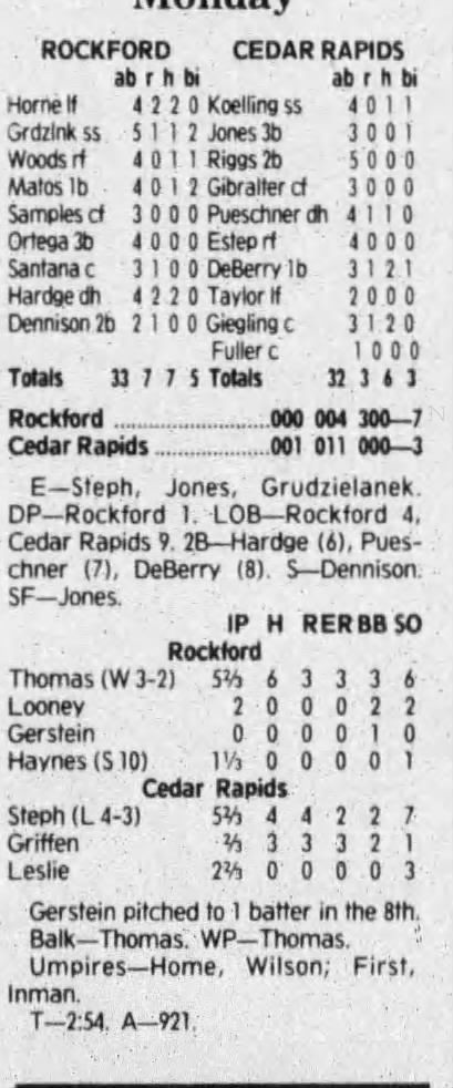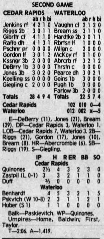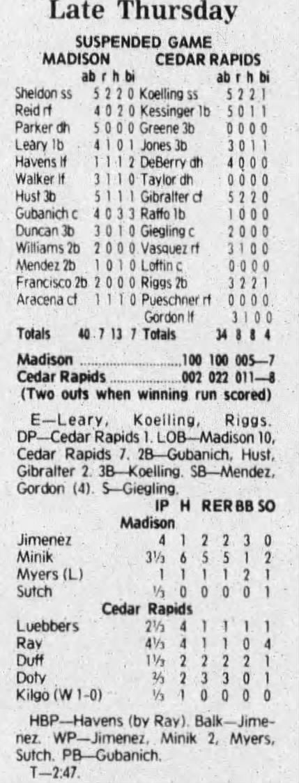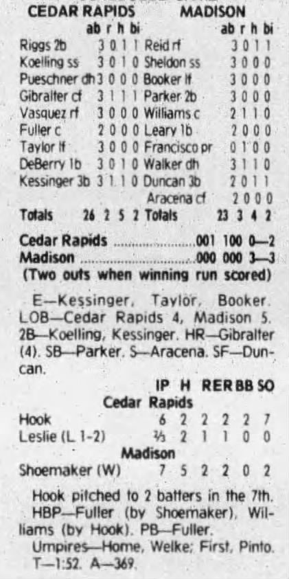 1992 Cedar Rapiids Reds box scores