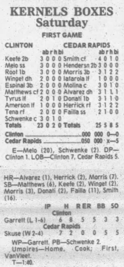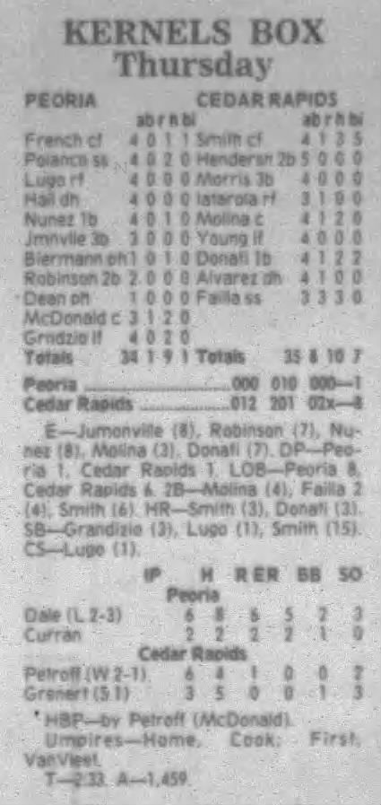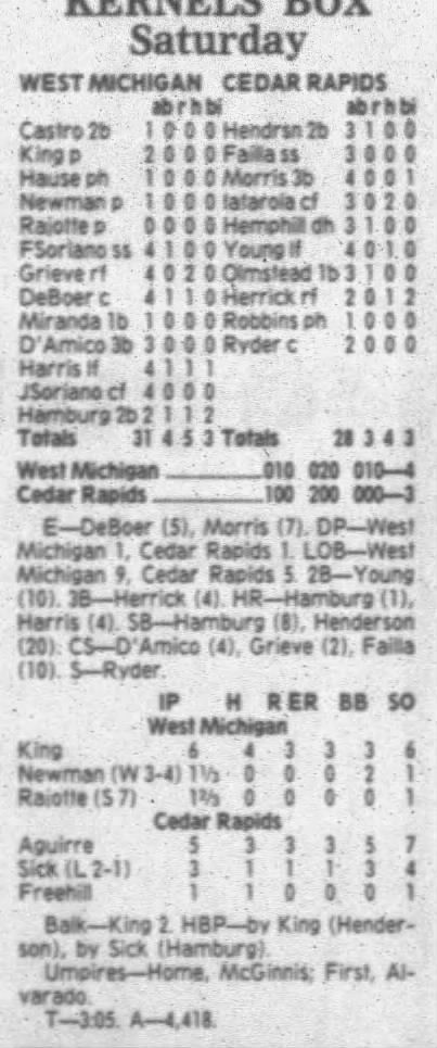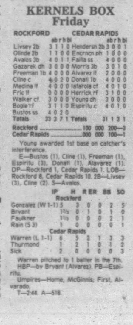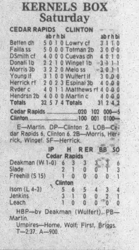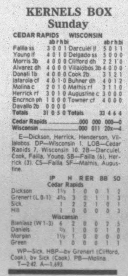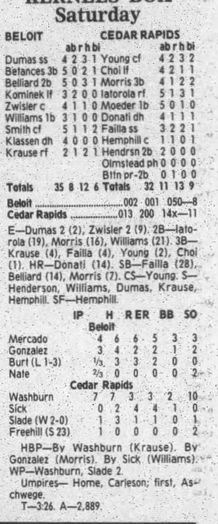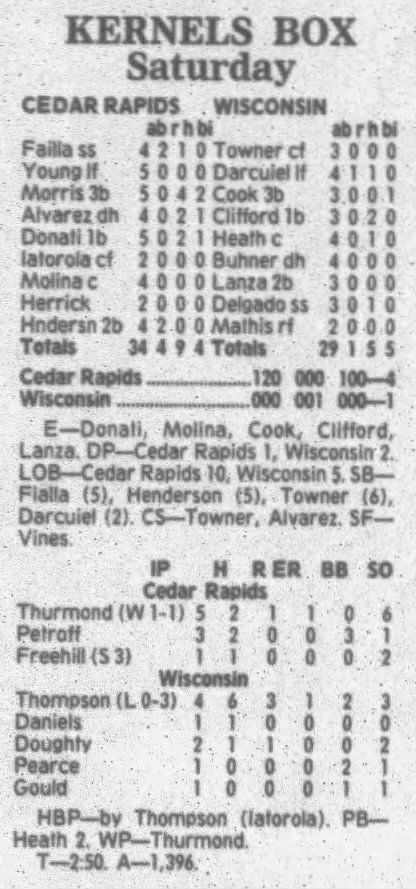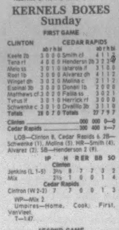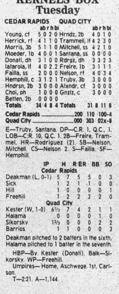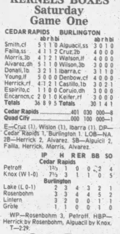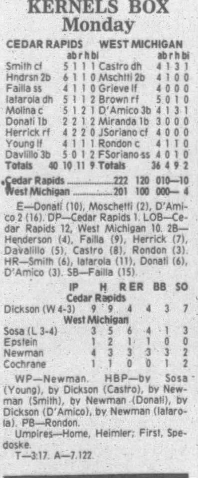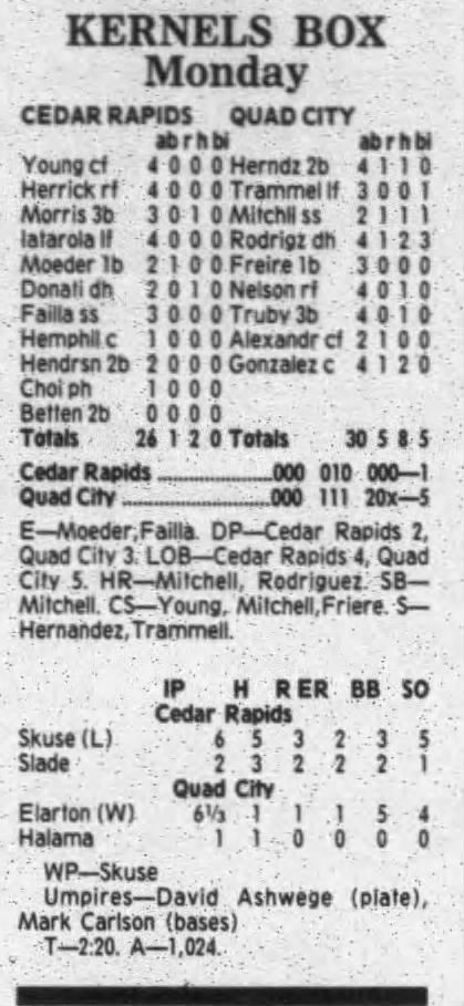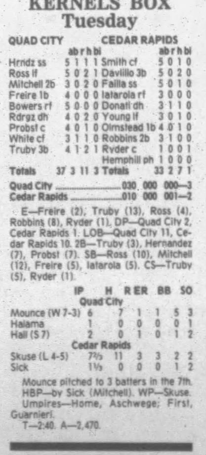 1995 Cedar Rapids Kernels box scores