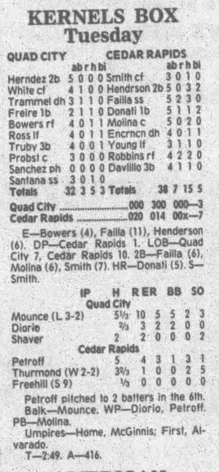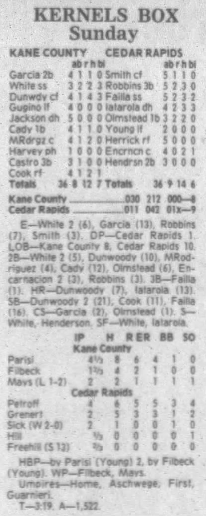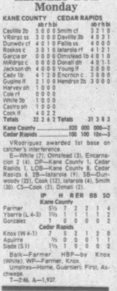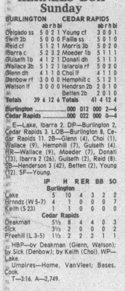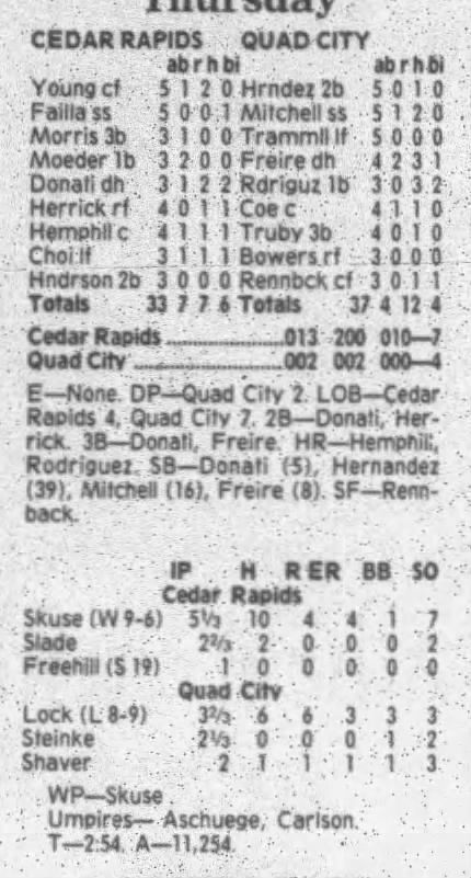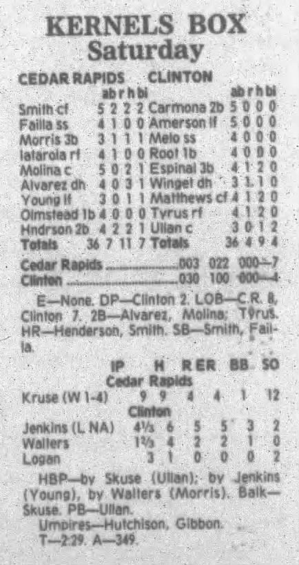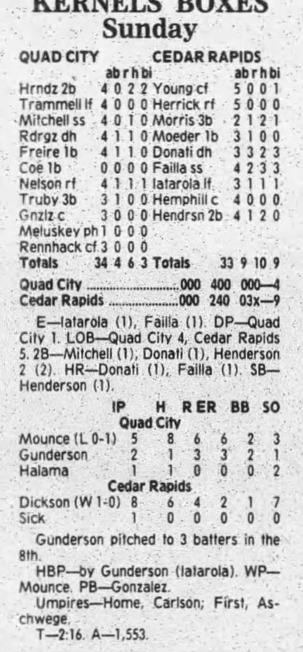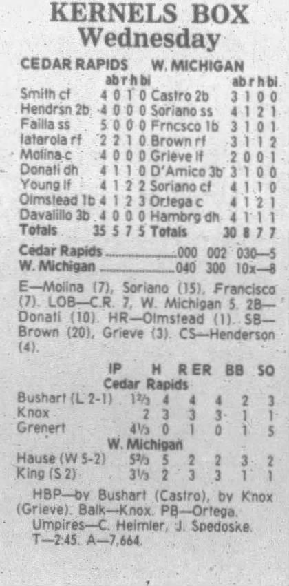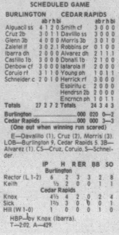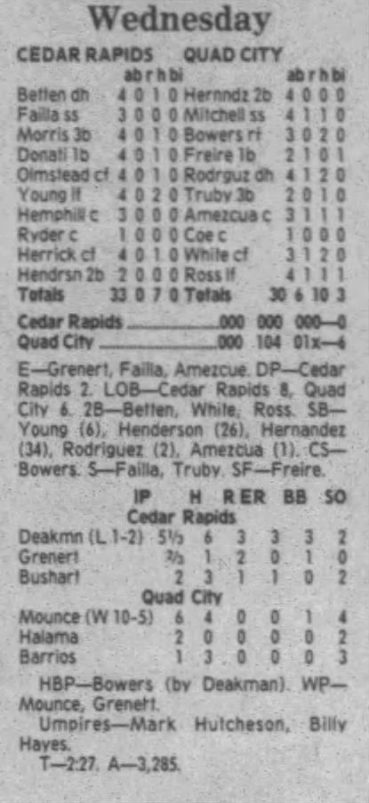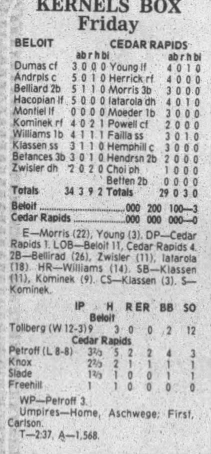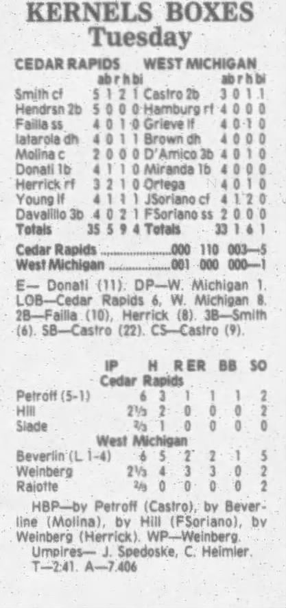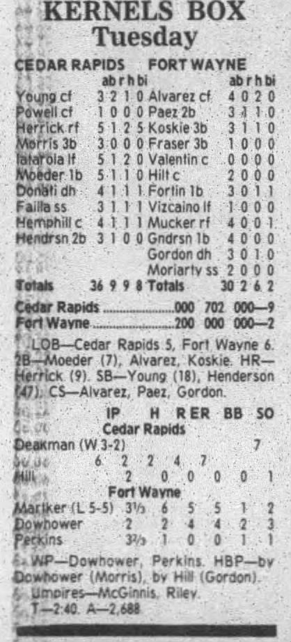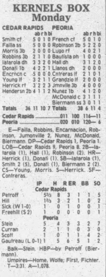 1995 Cedar Rapids Kernels box scores