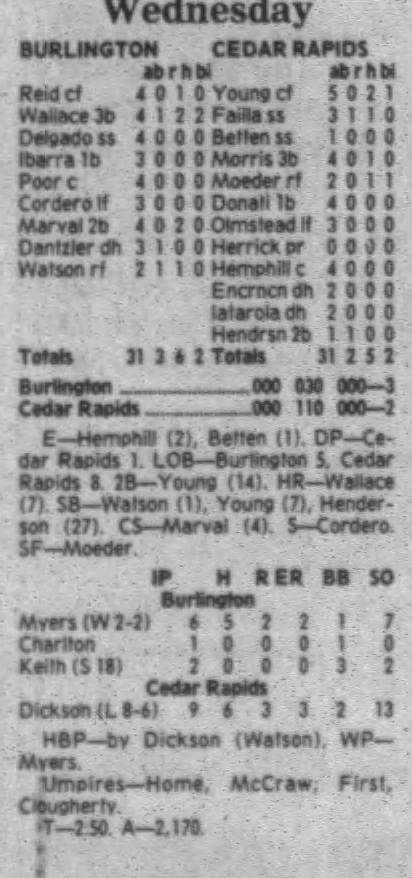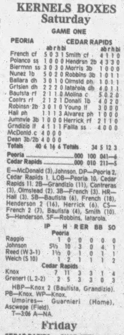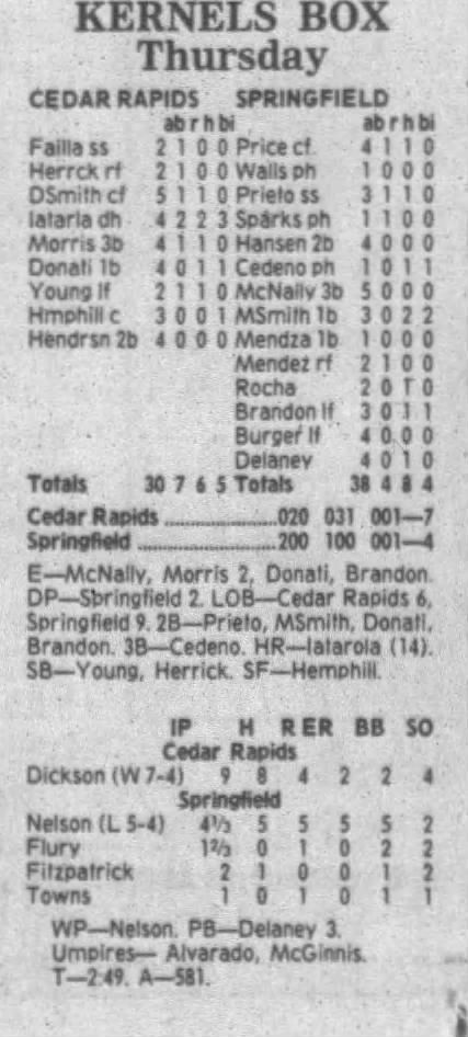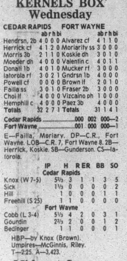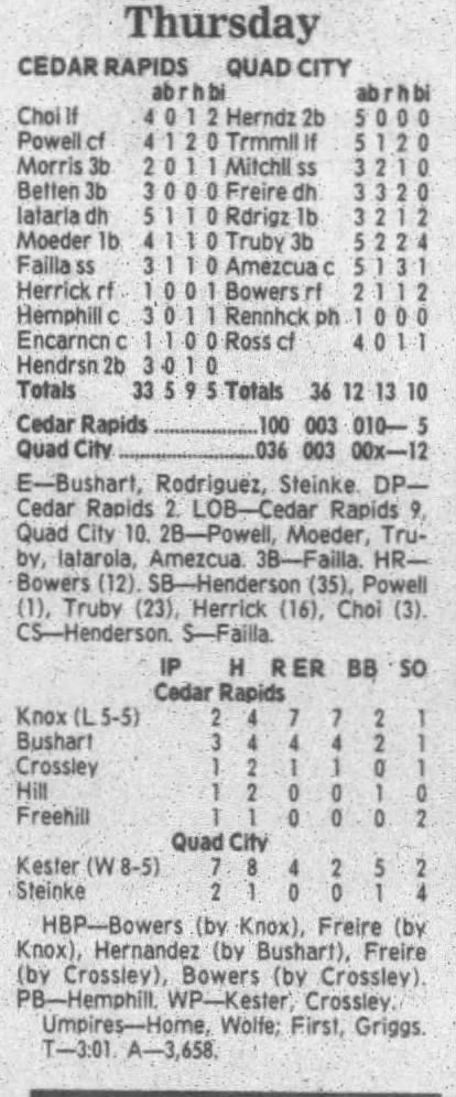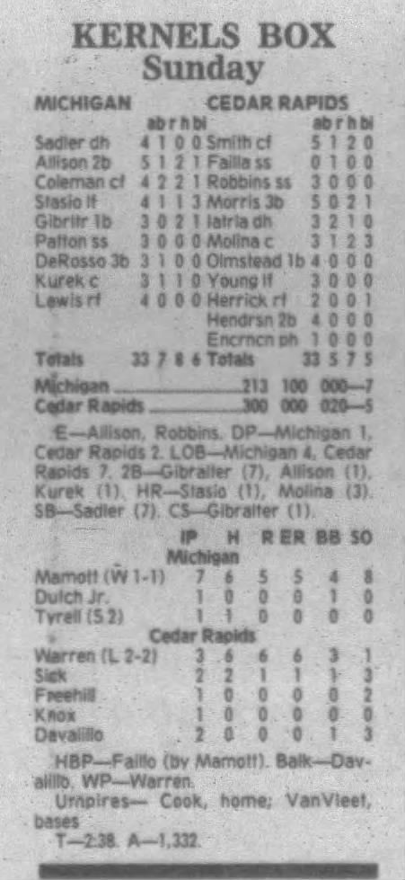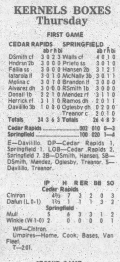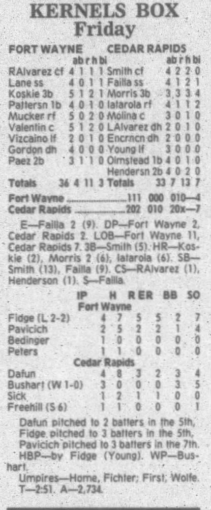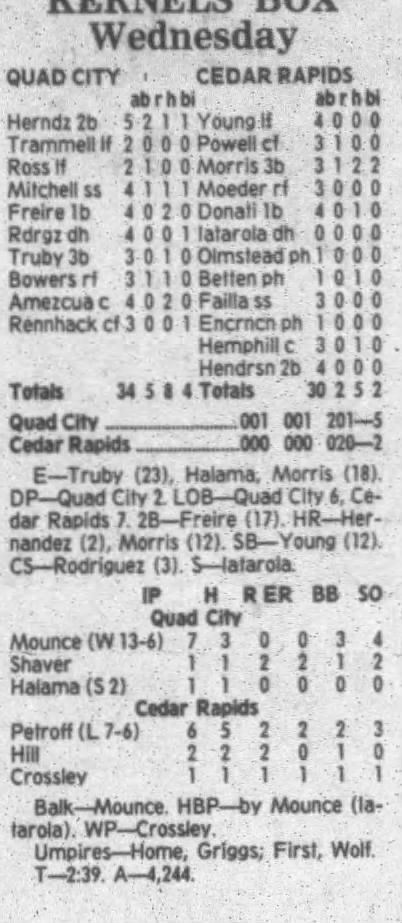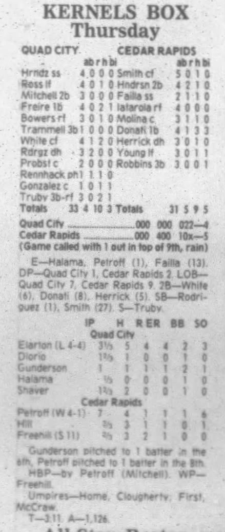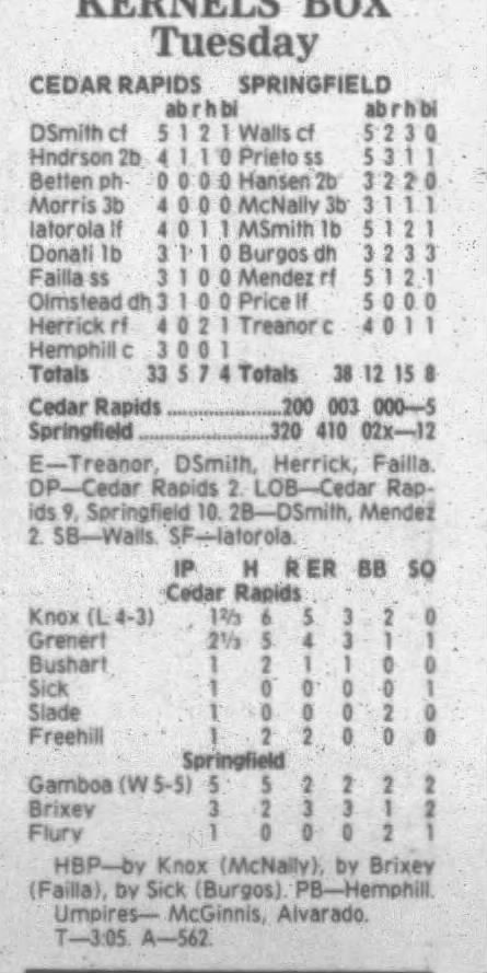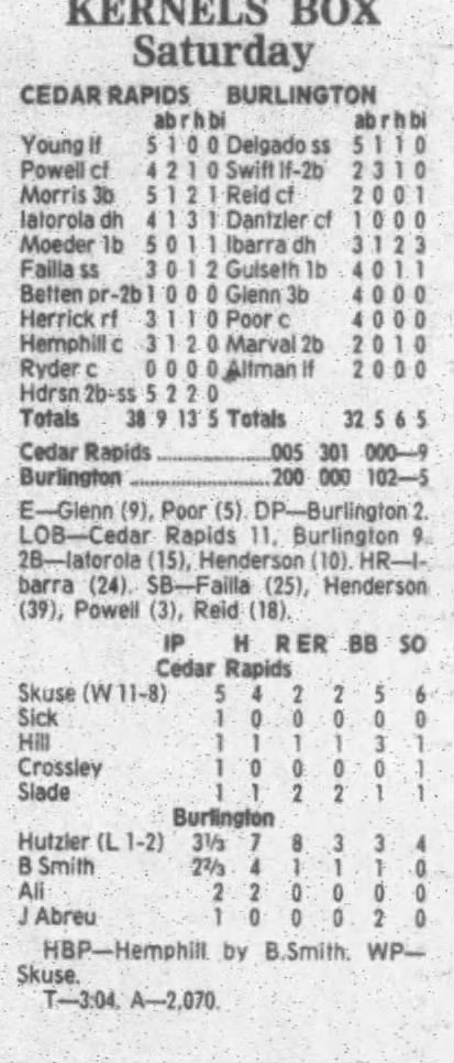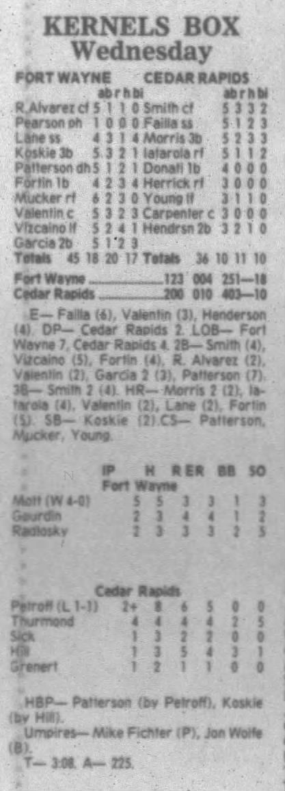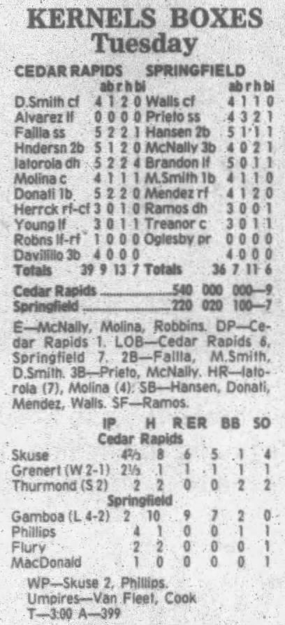 1995 Cedar Rapids Kernels box scores