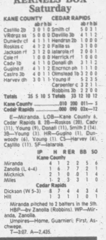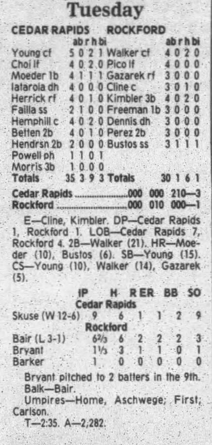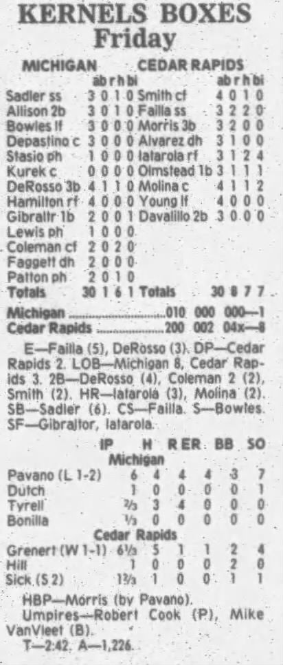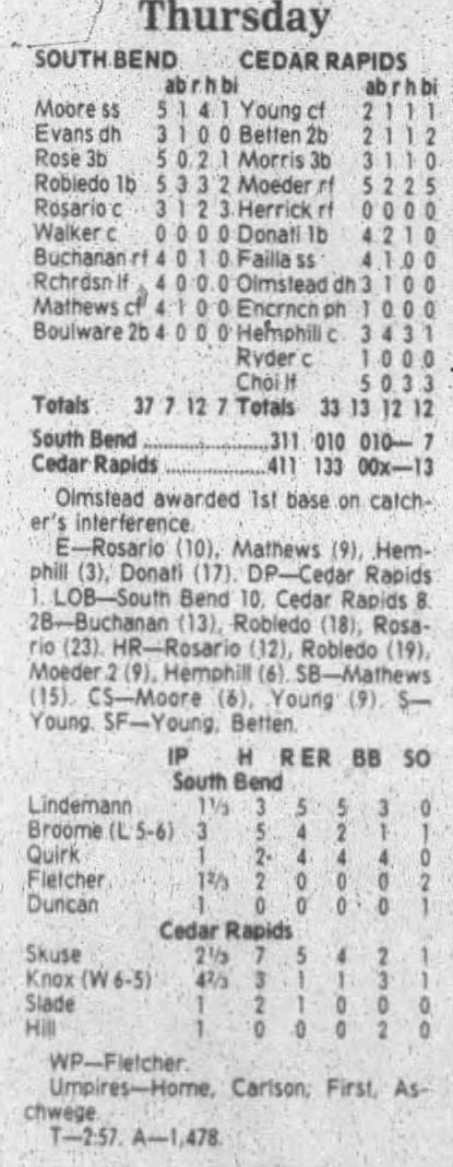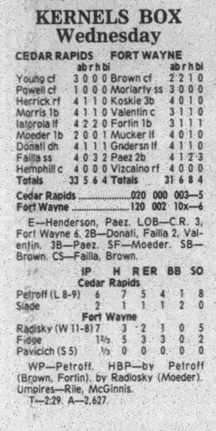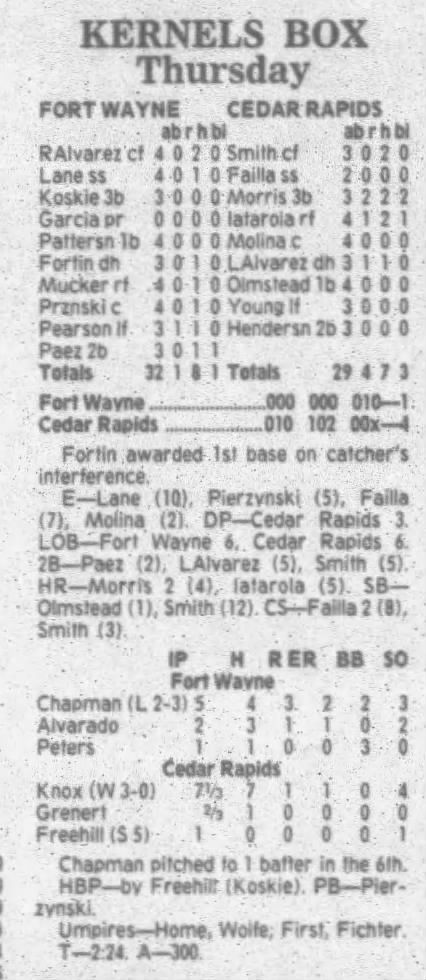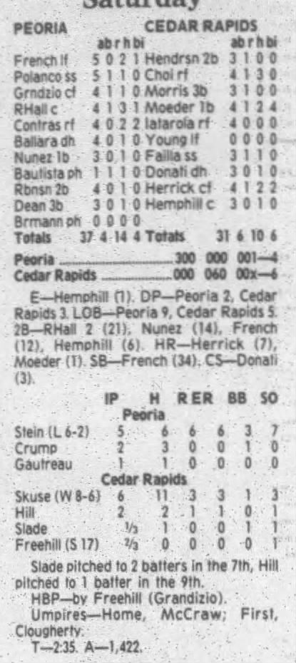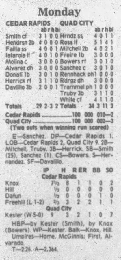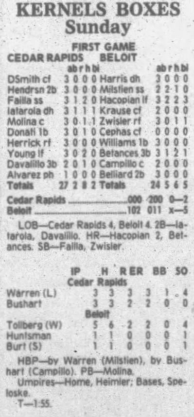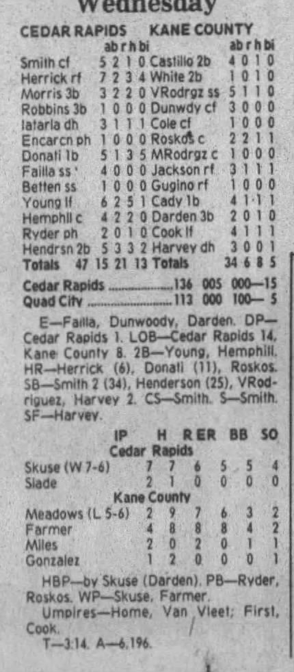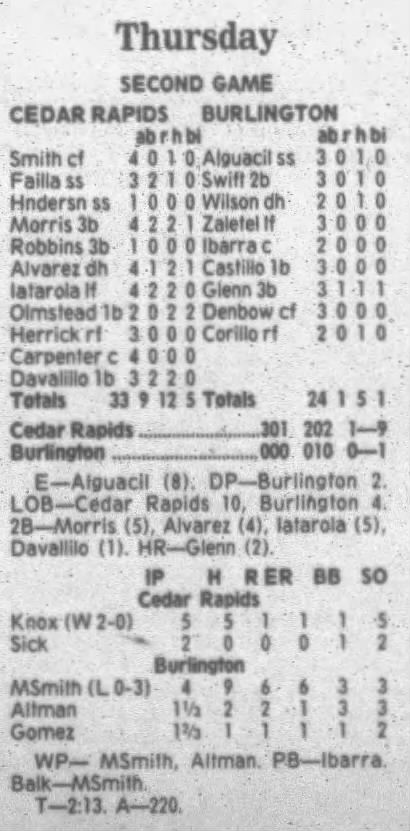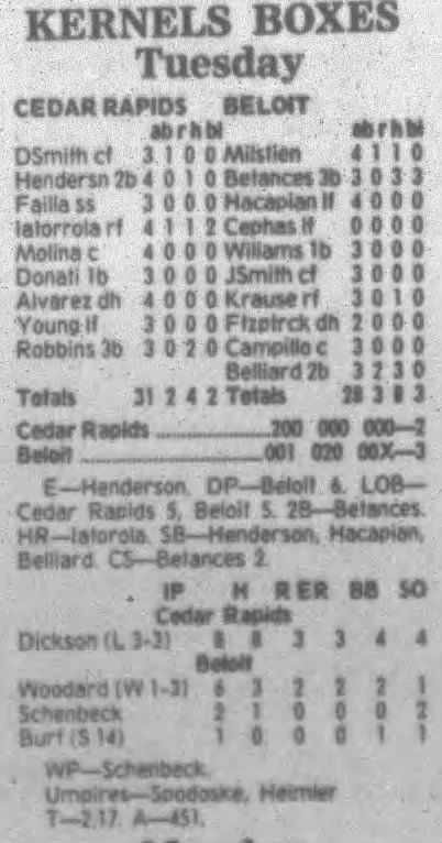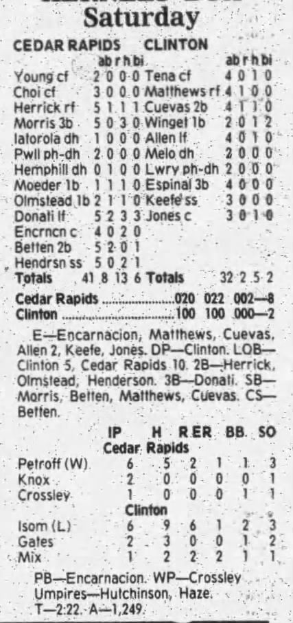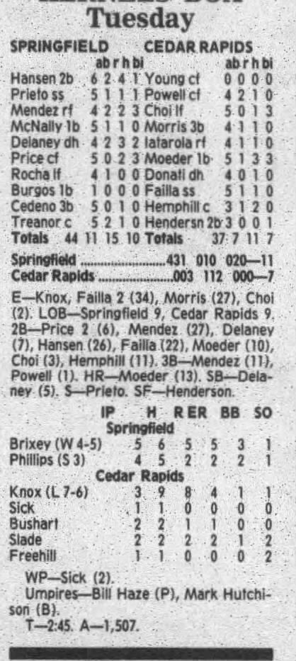 1995 Cedar Rapids Kernels box scores
