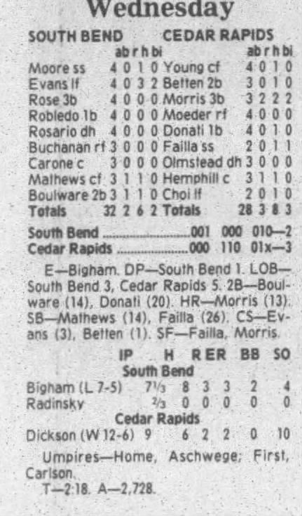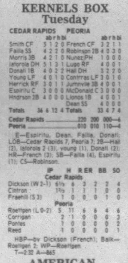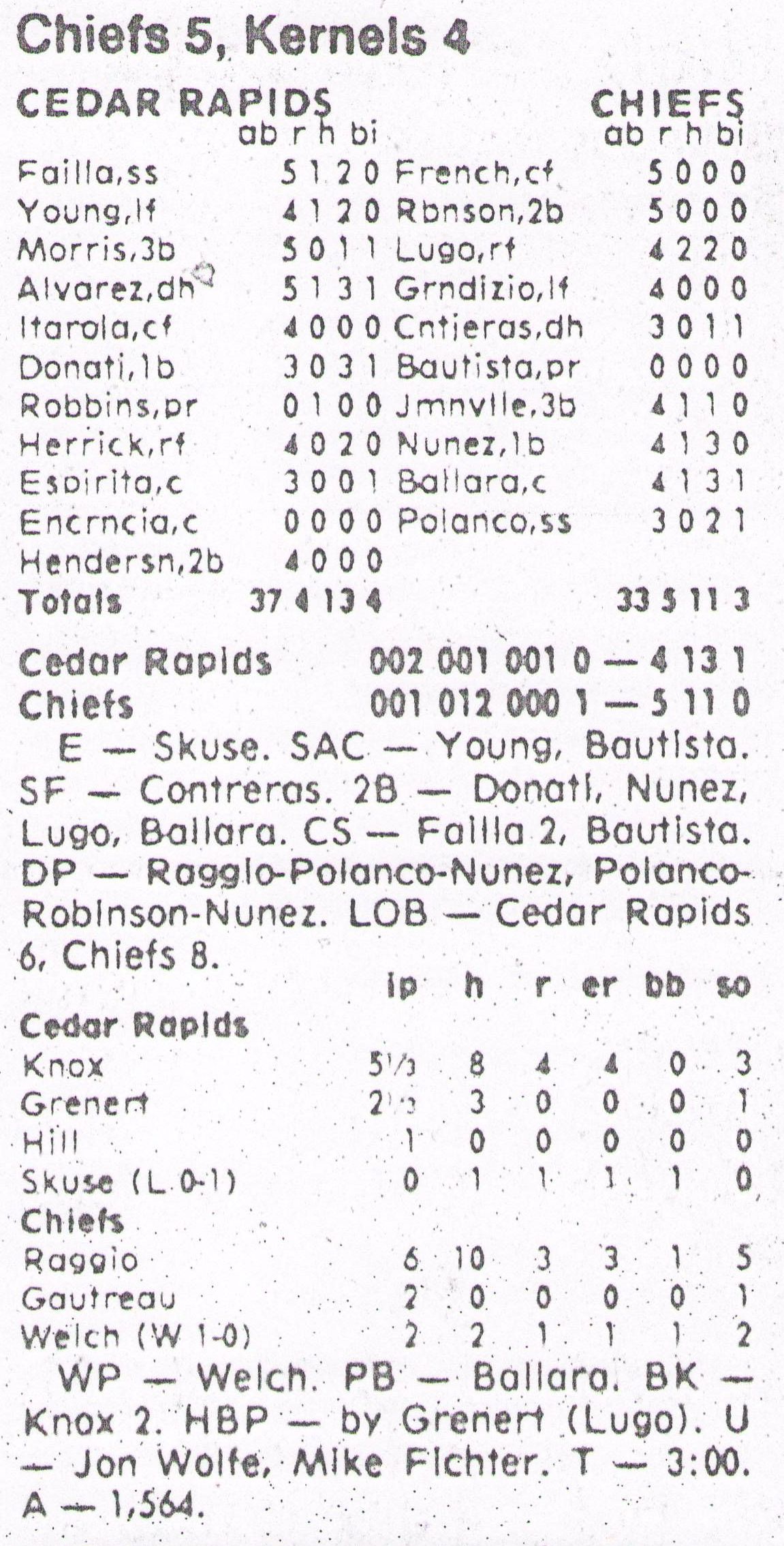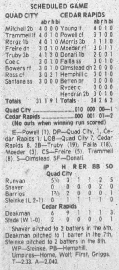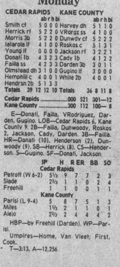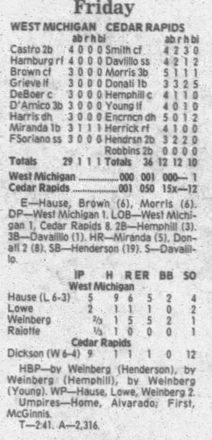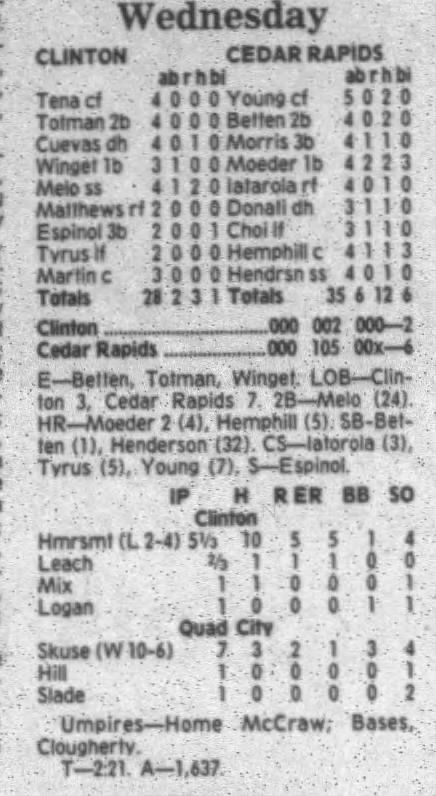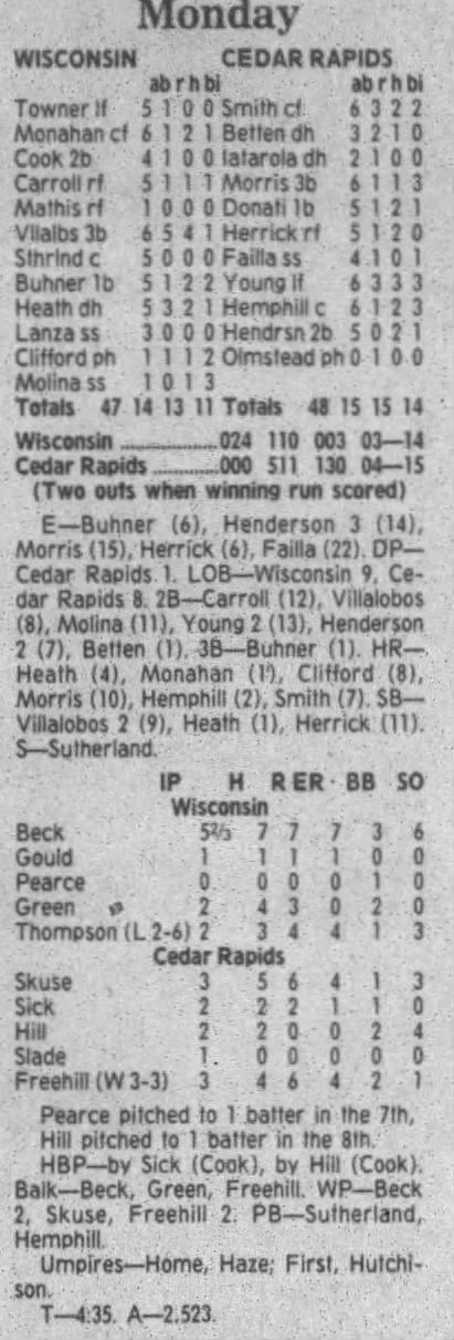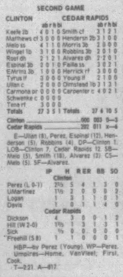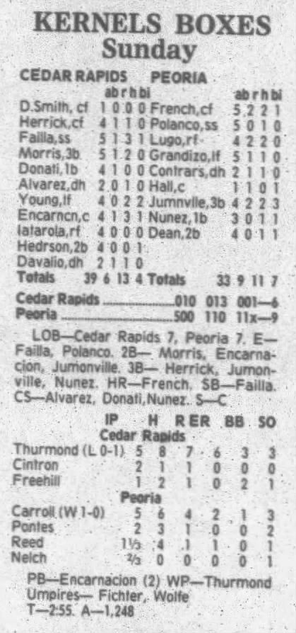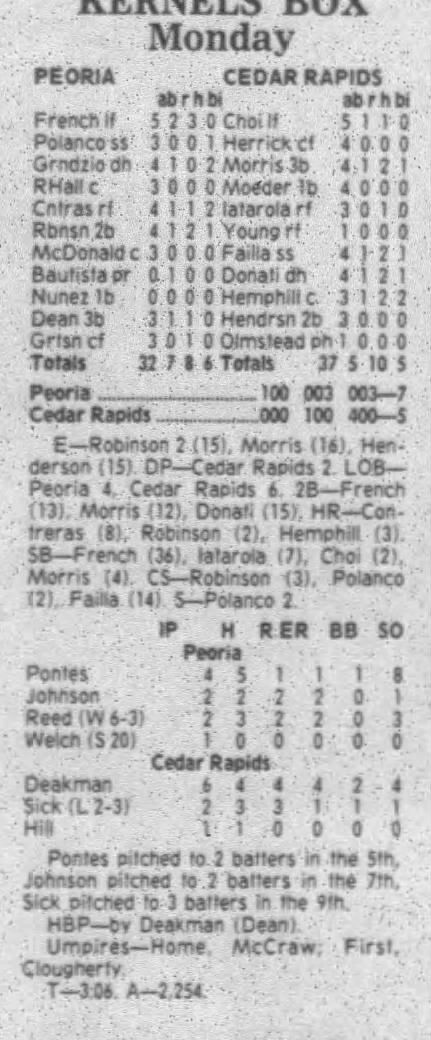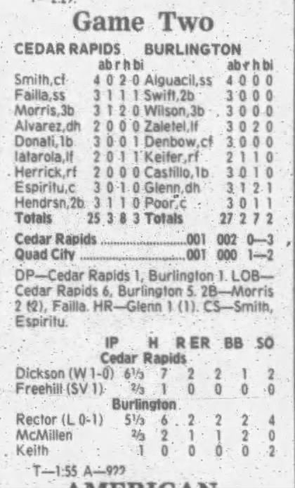 1995 Cedar Rapids Kernels box scores