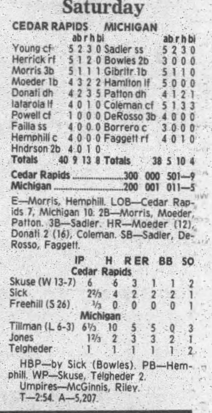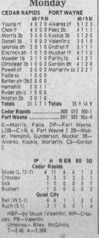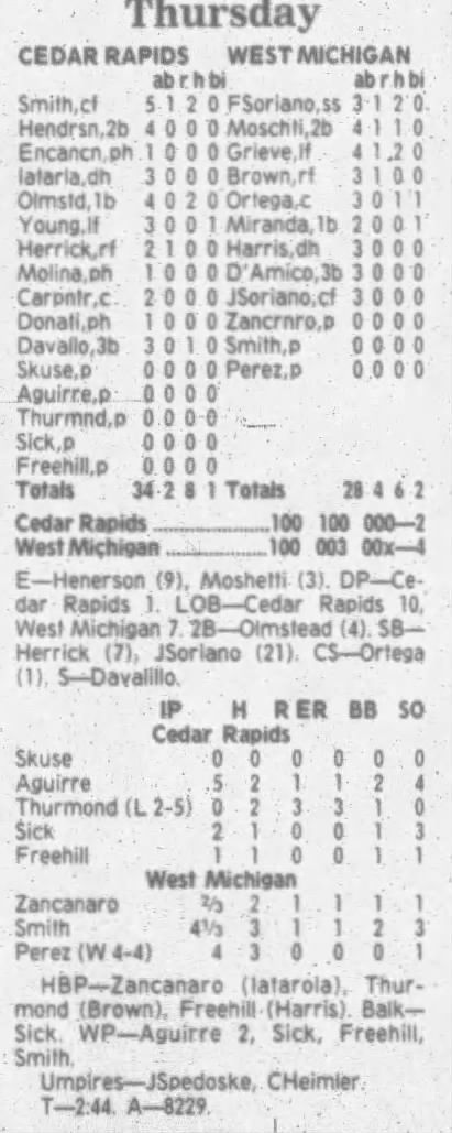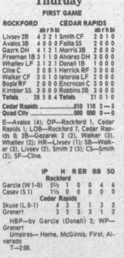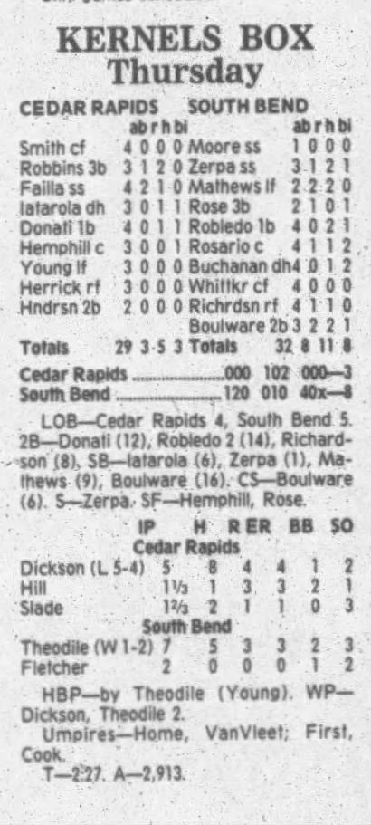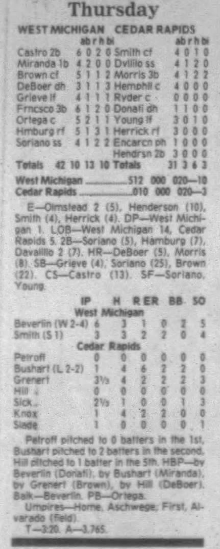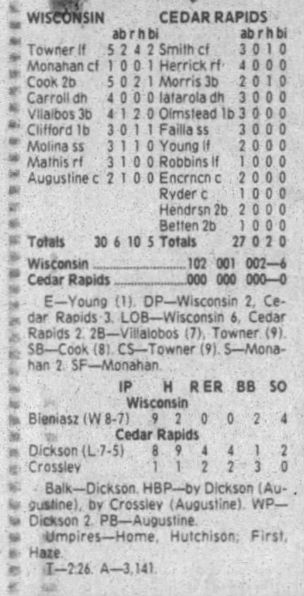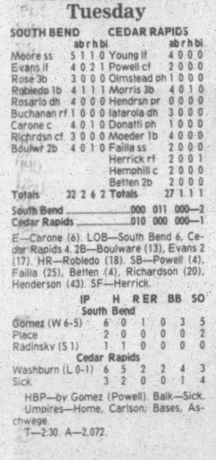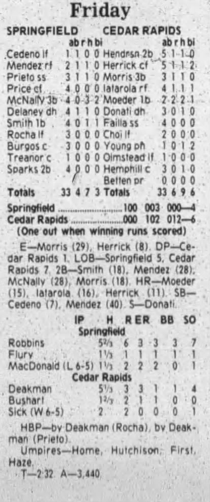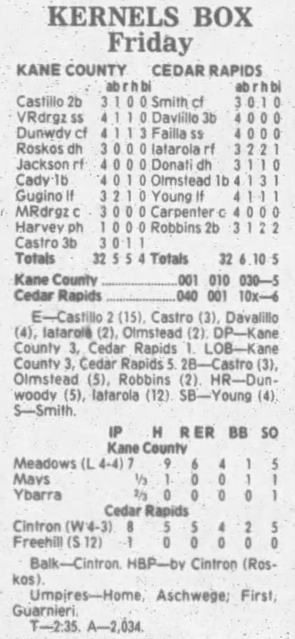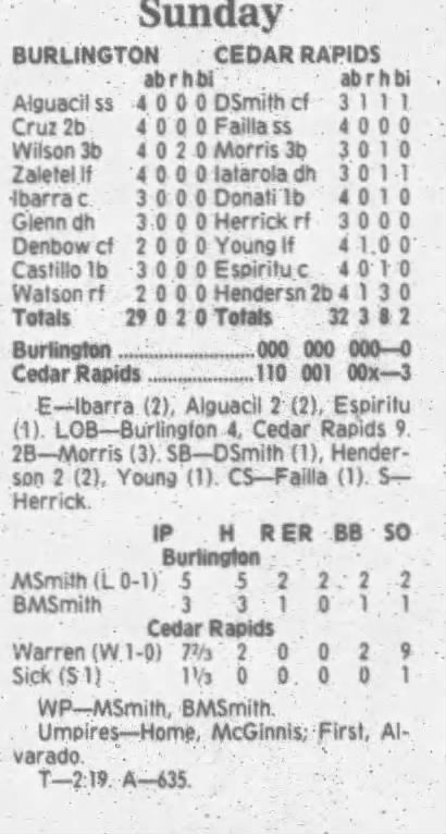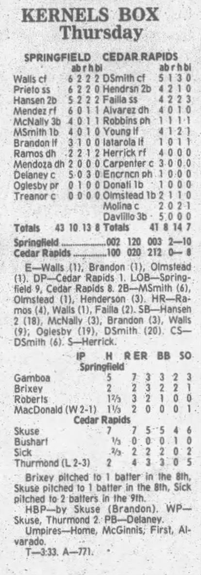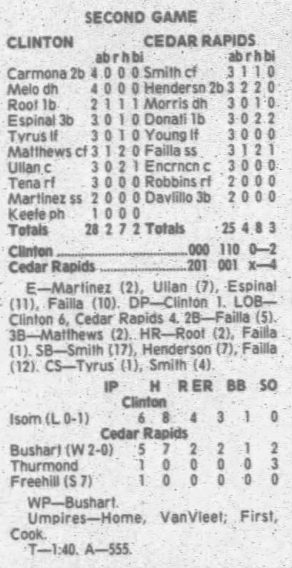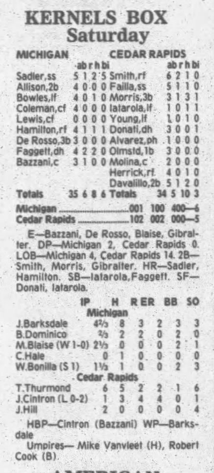 1995 Cedar Rapids Kernels box scores