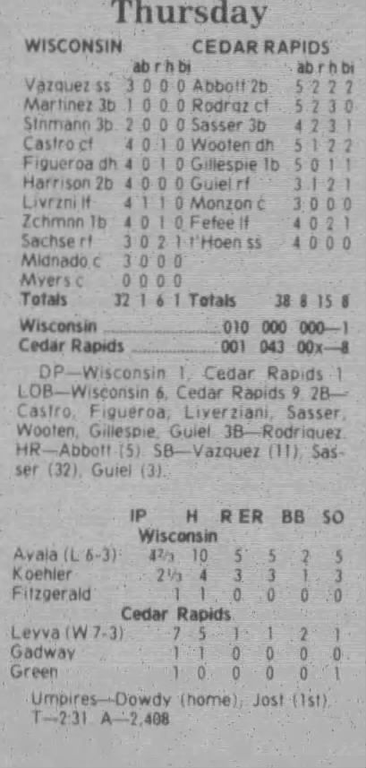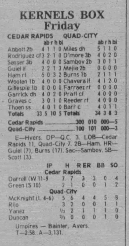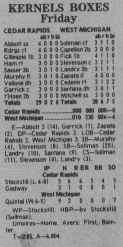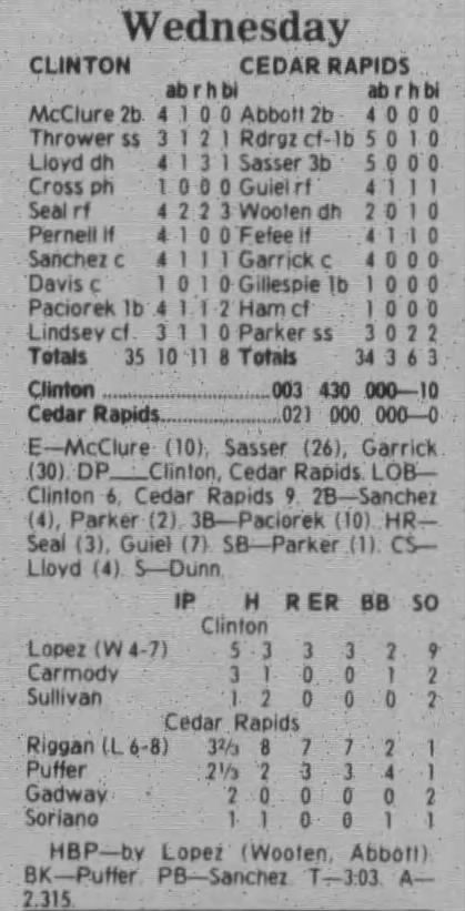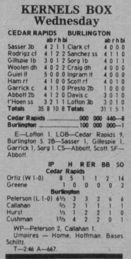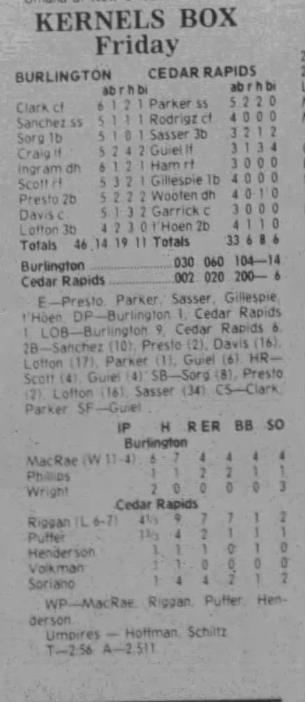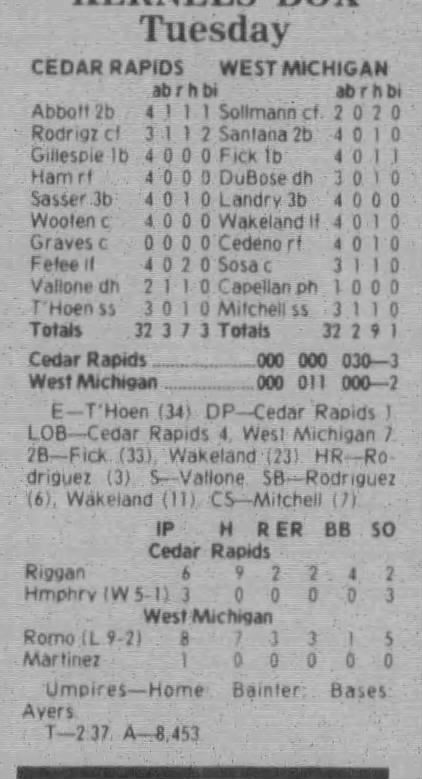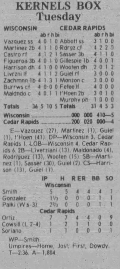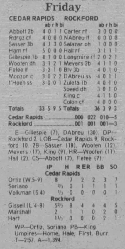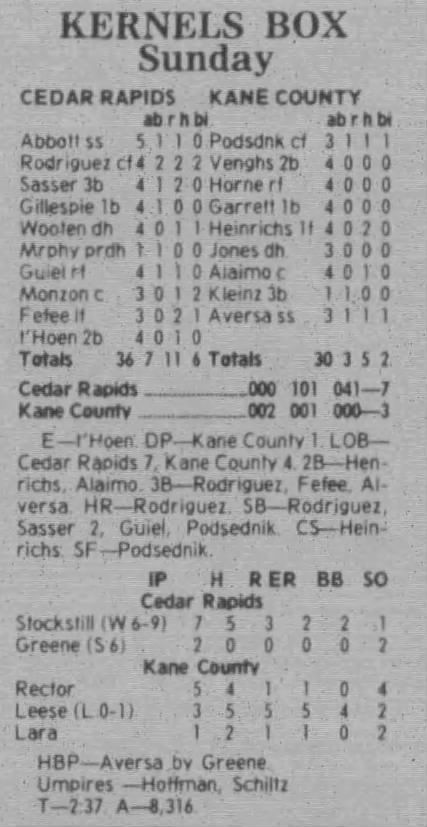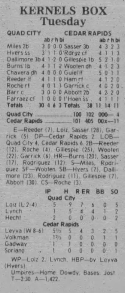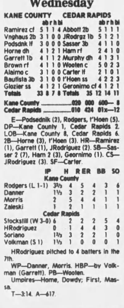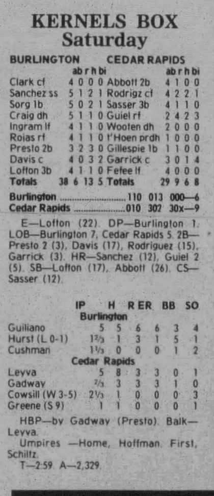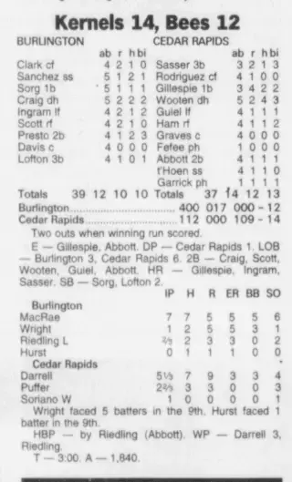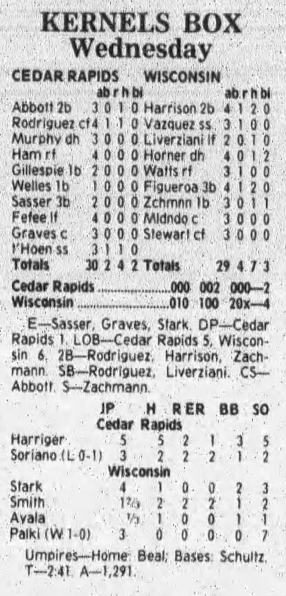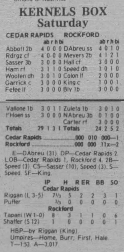 1997 Cedar Rapids Kernels box scores
