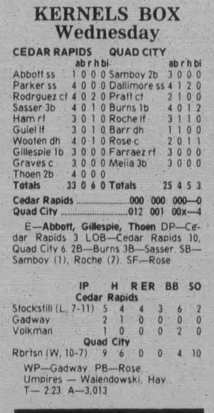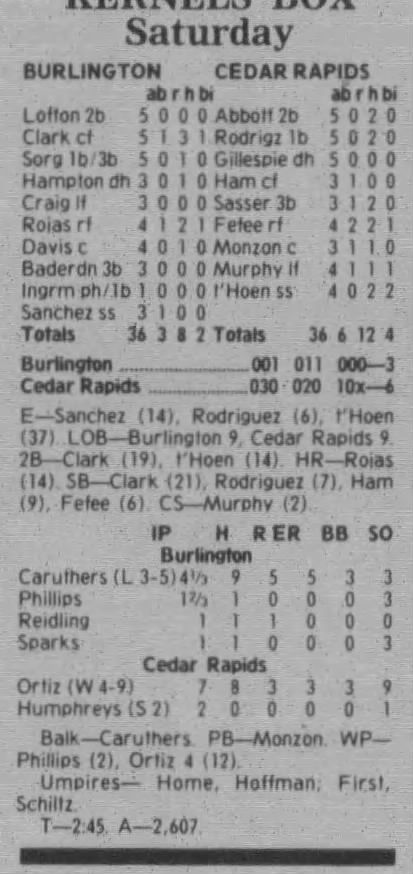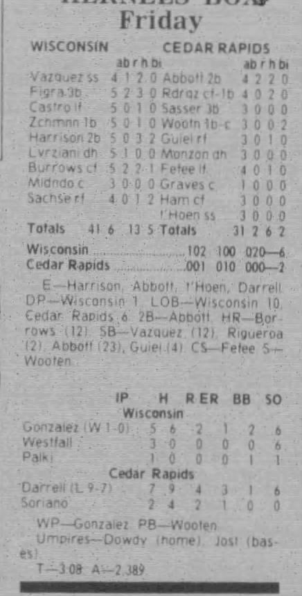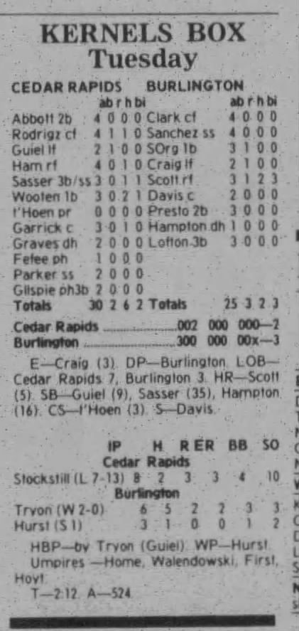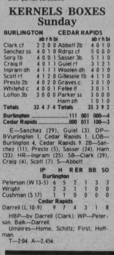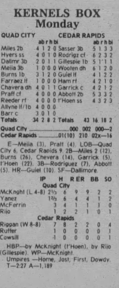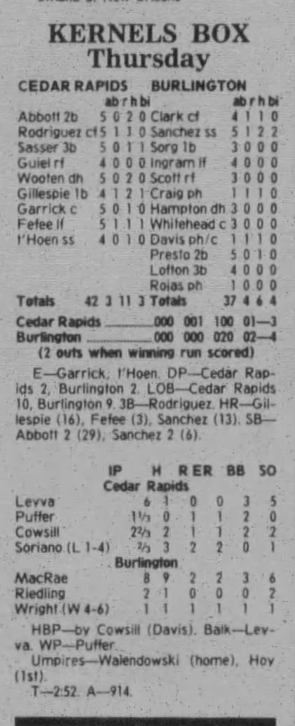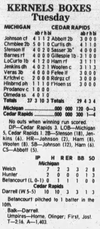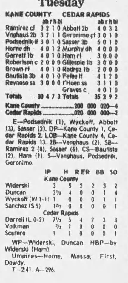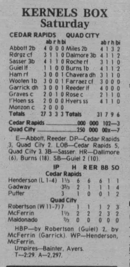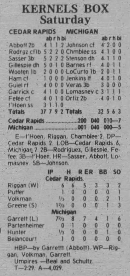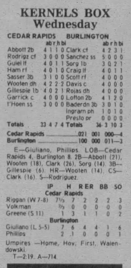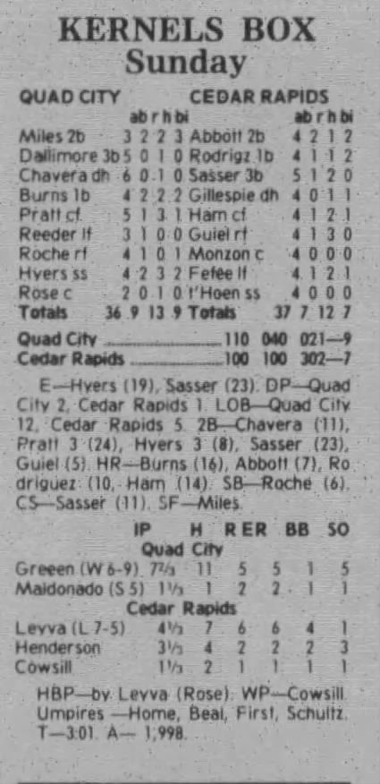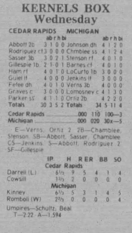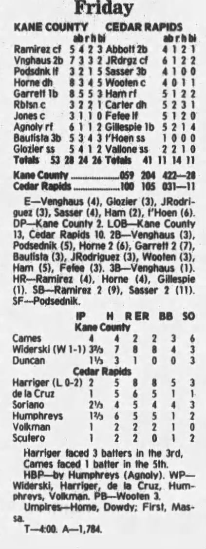 1997 Cedar Rapids Kernels box scores