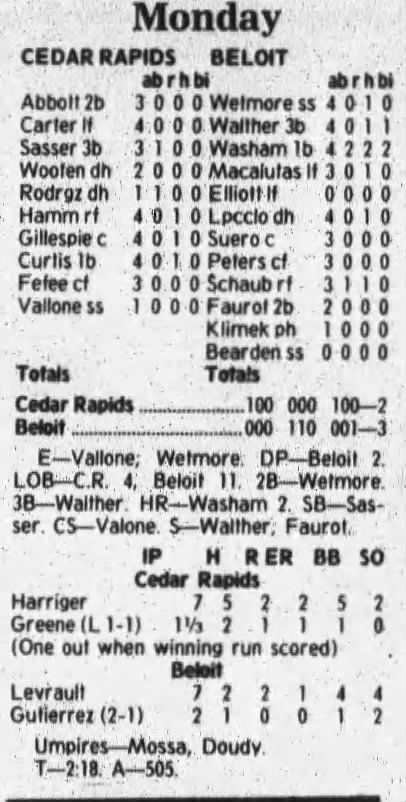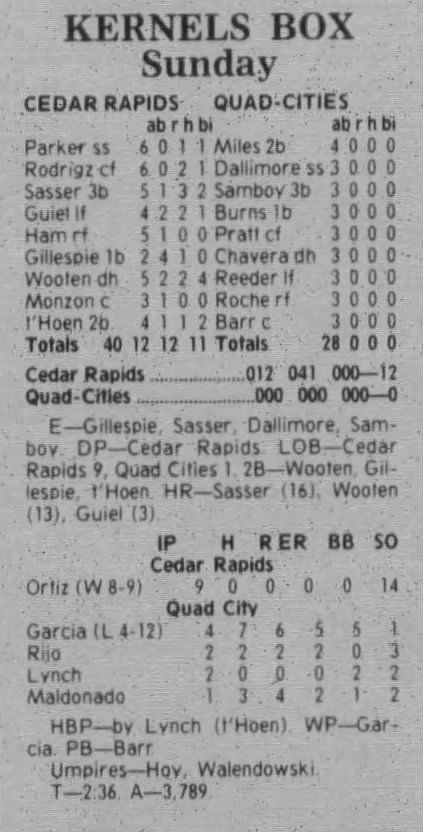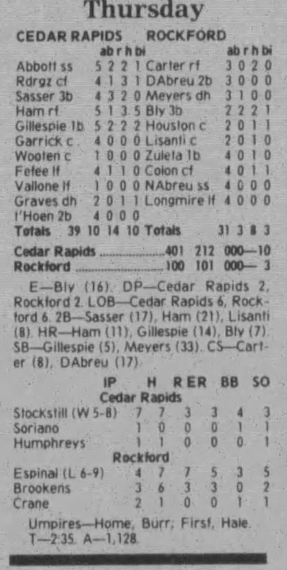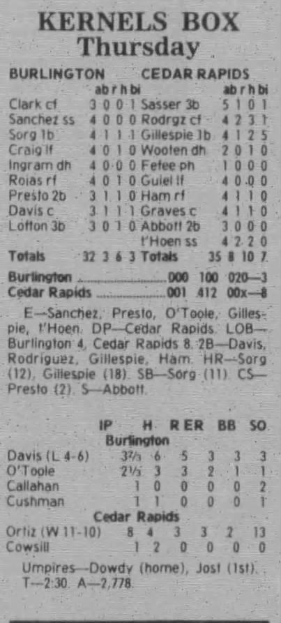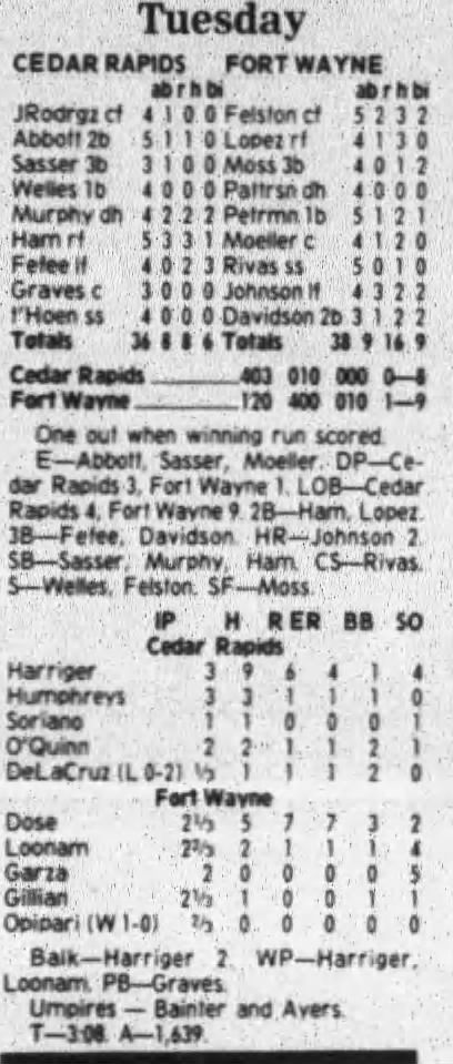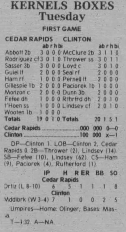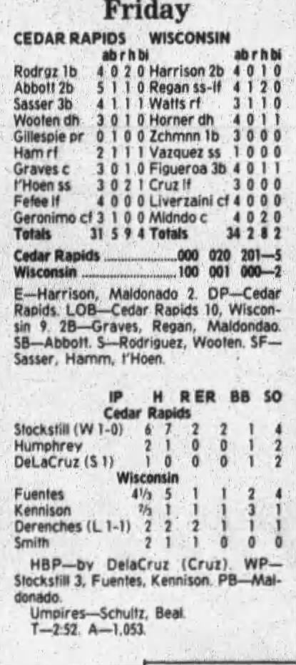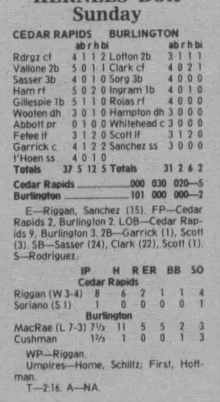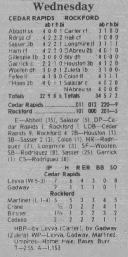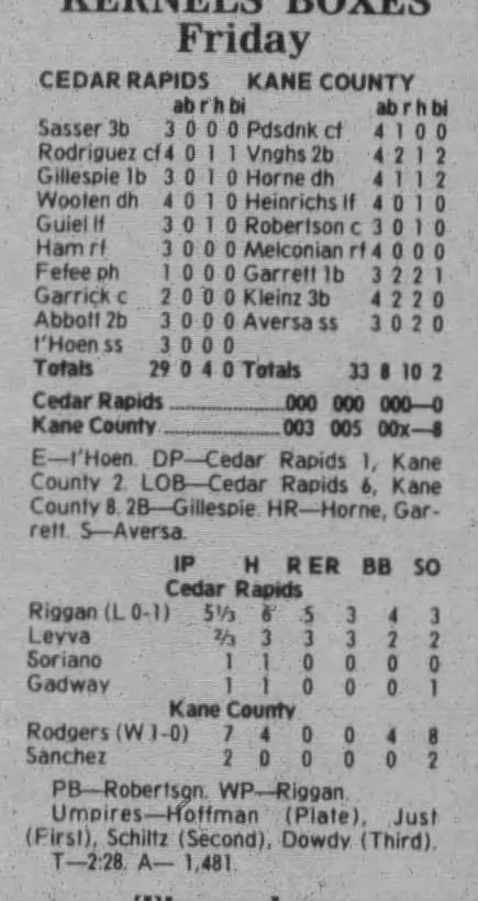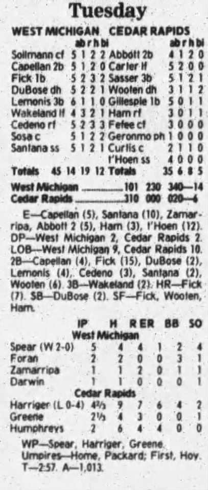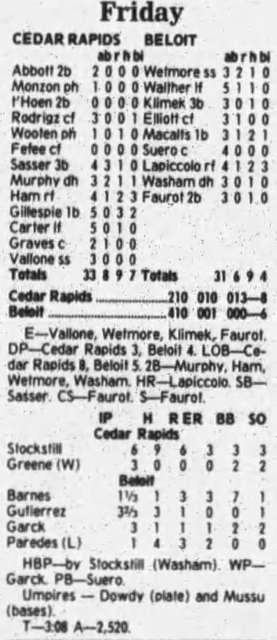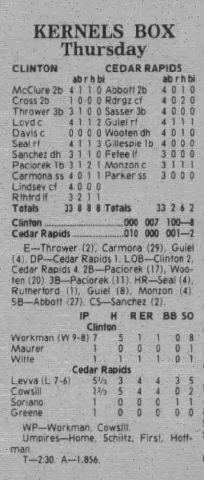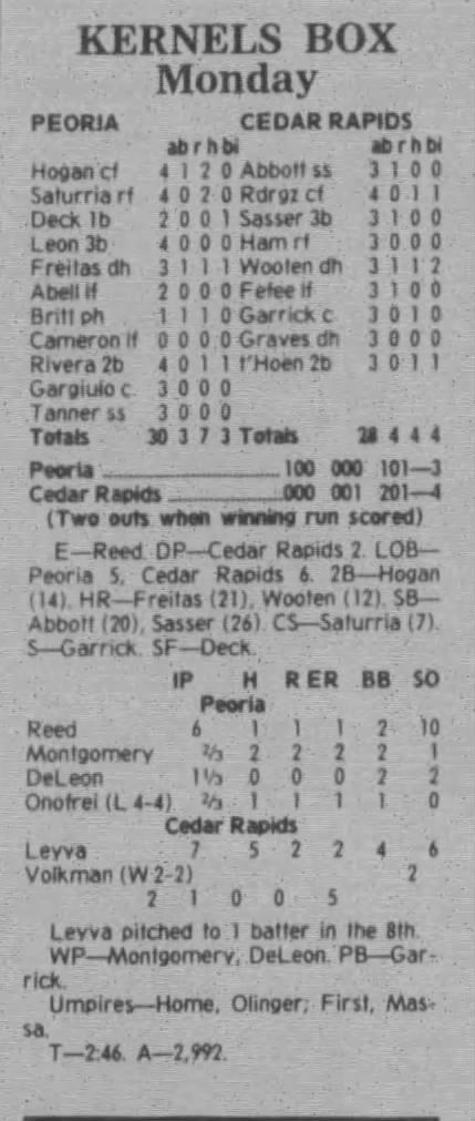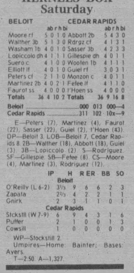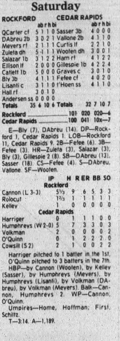1997 Cedar Rapids Kernels box scores