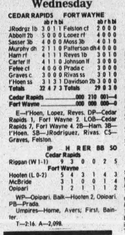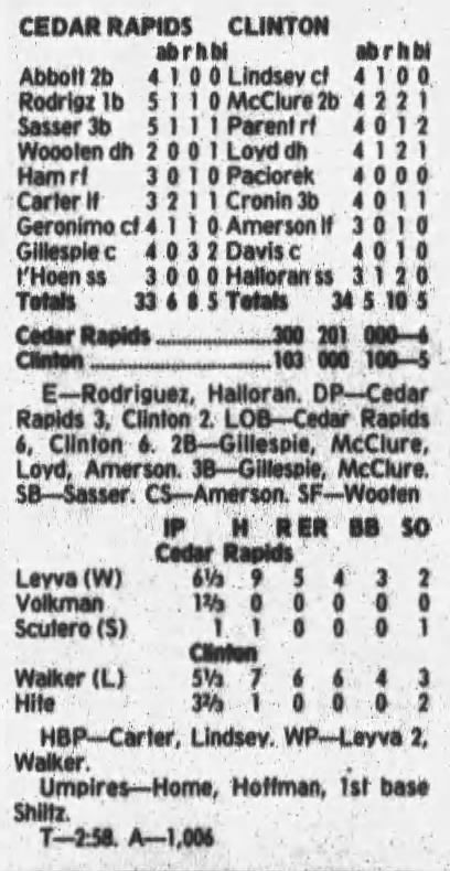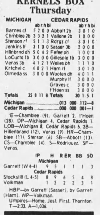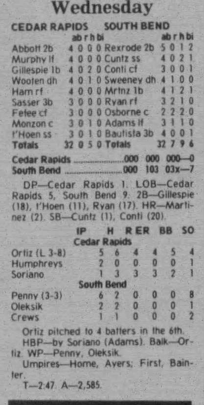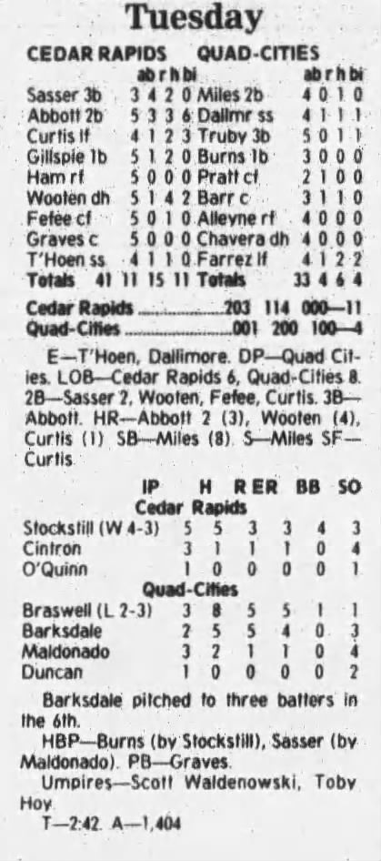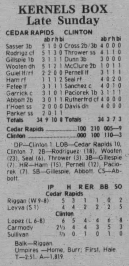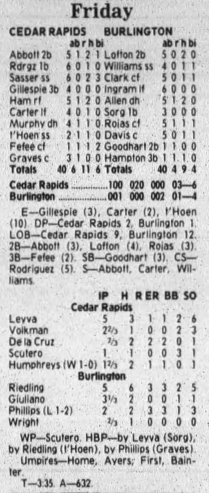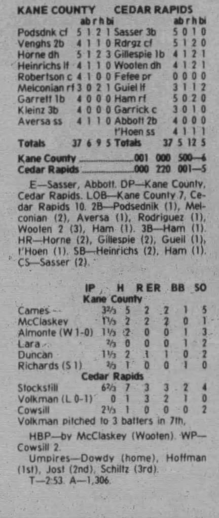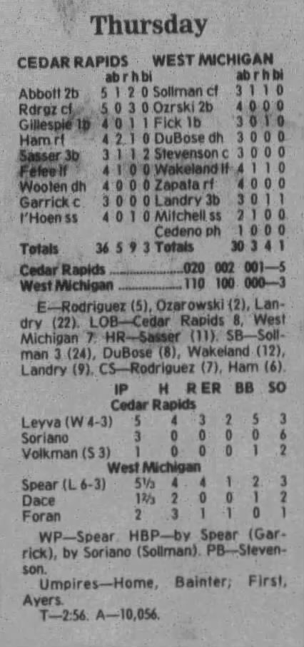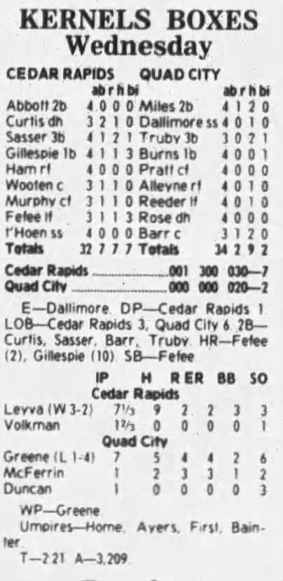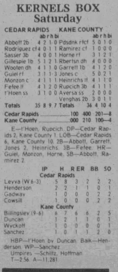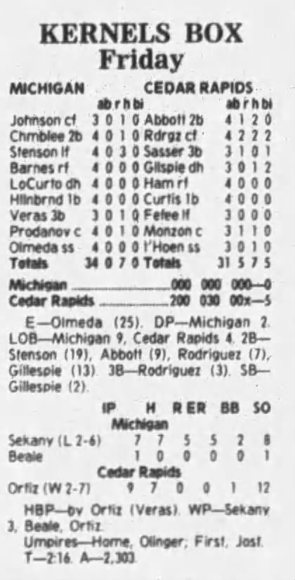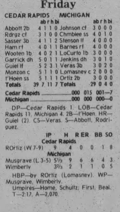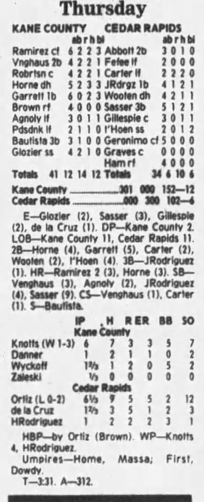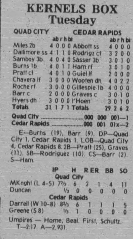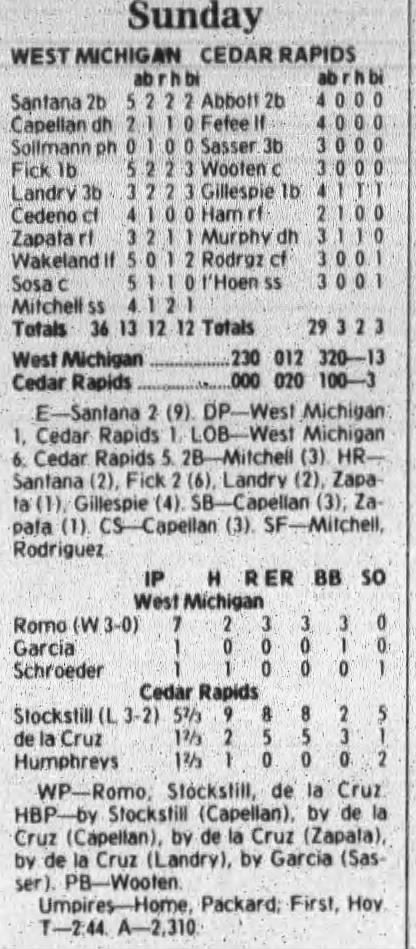 1997 Cedar Rapids Kernels box scores