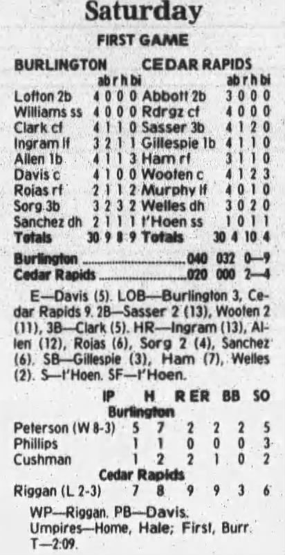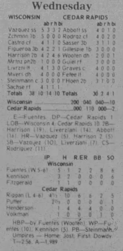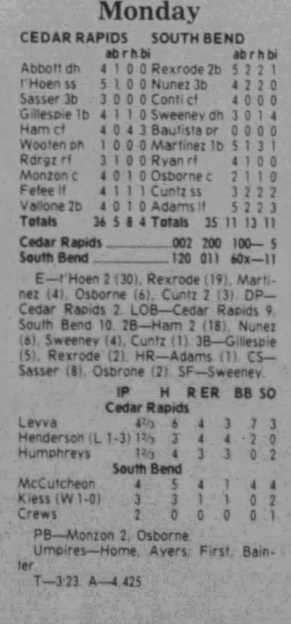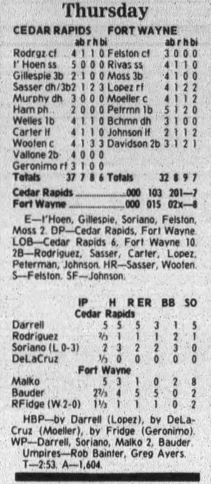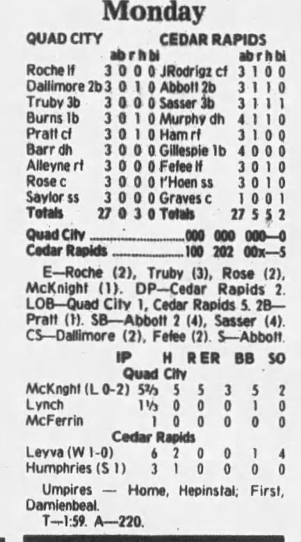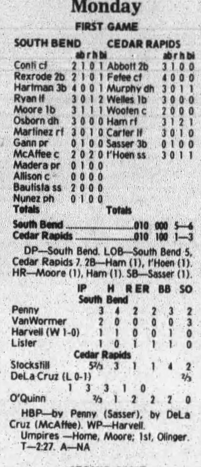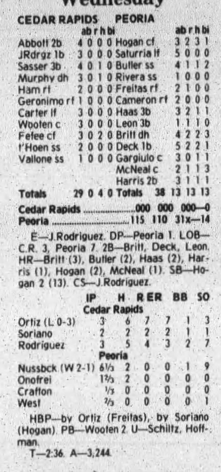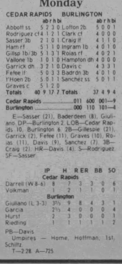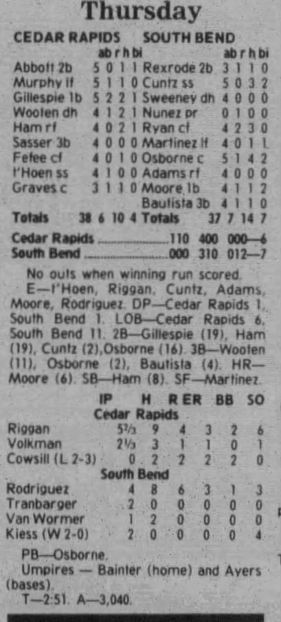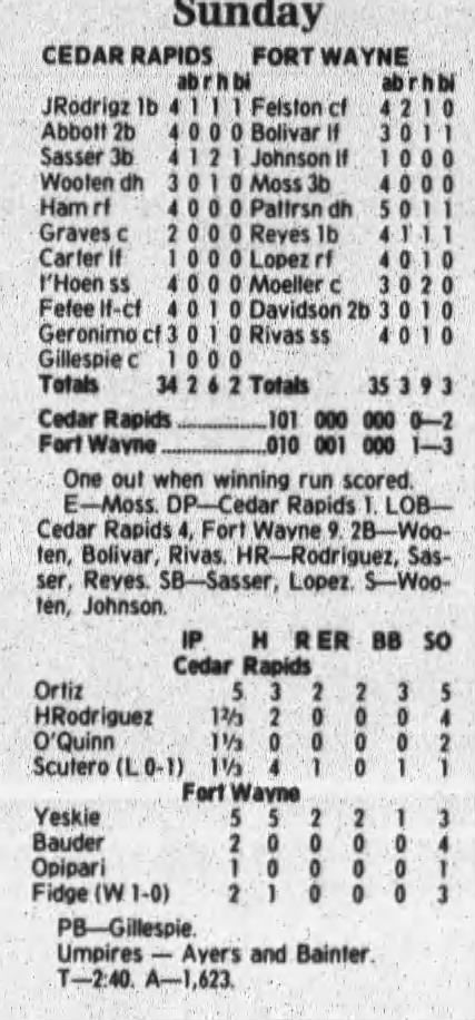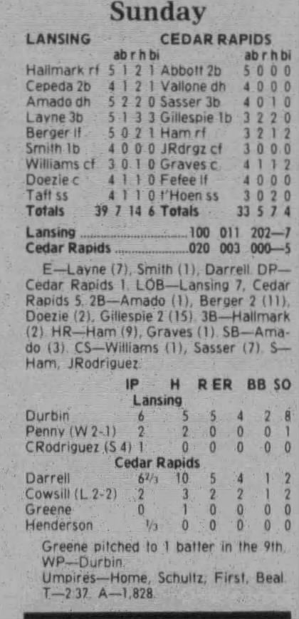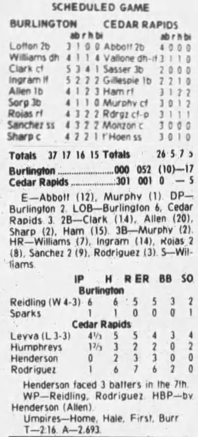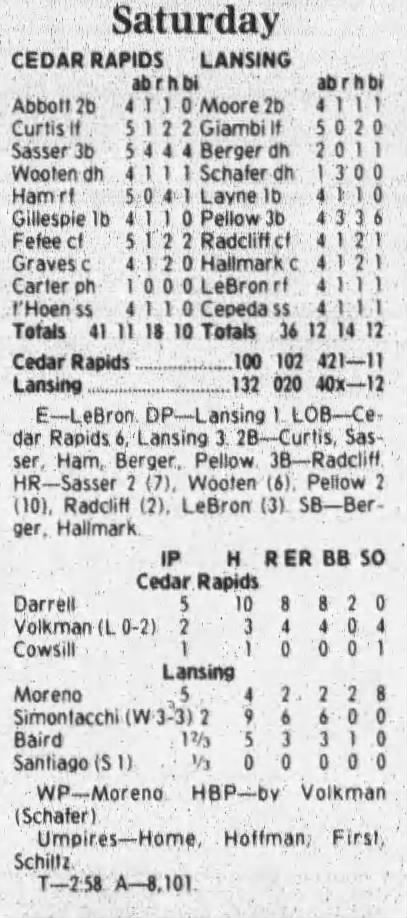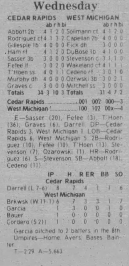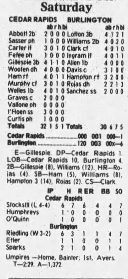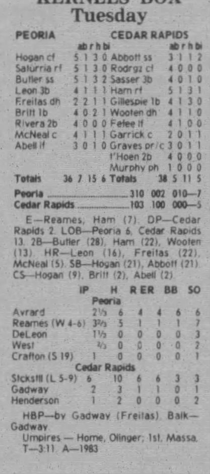 1997 Cedar Rapids Kernels box scores