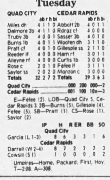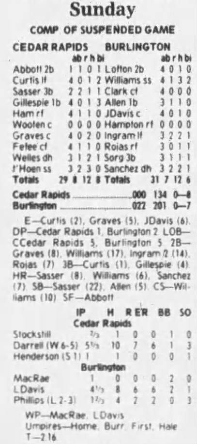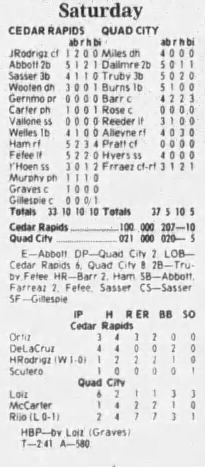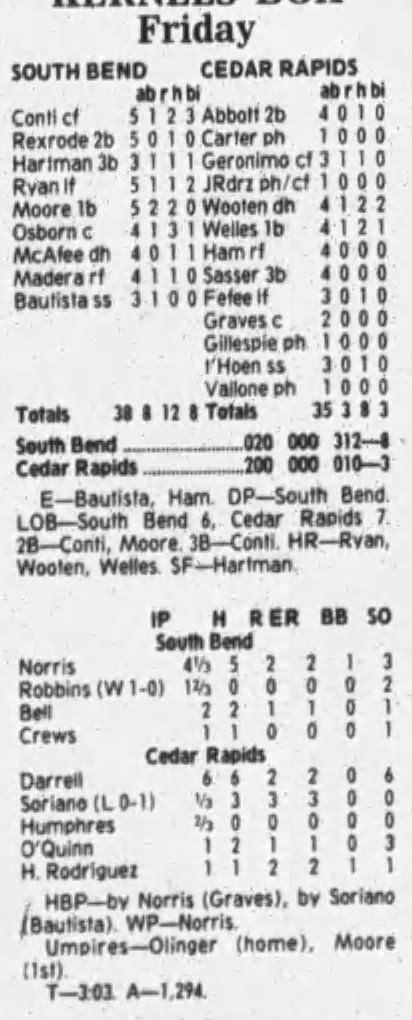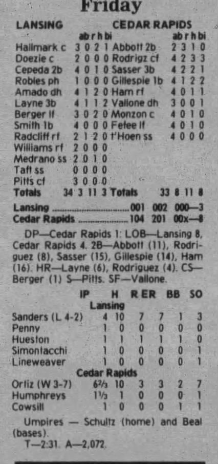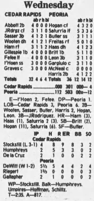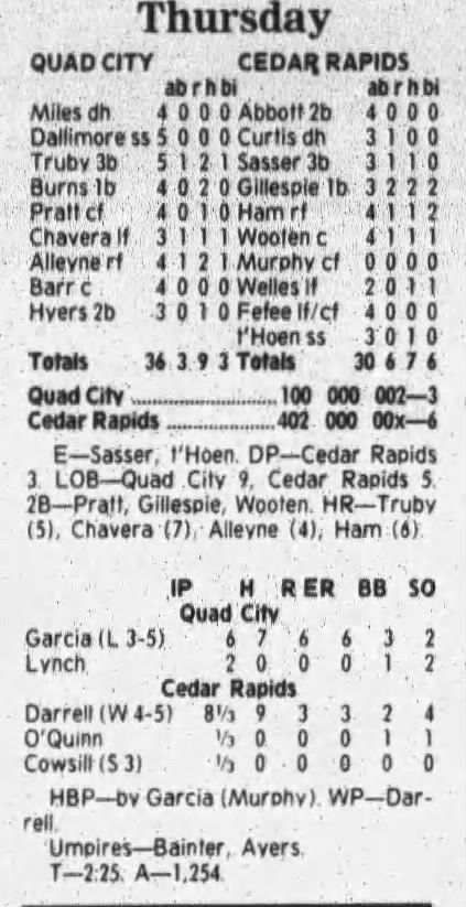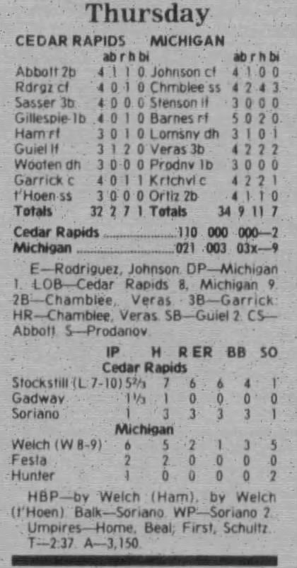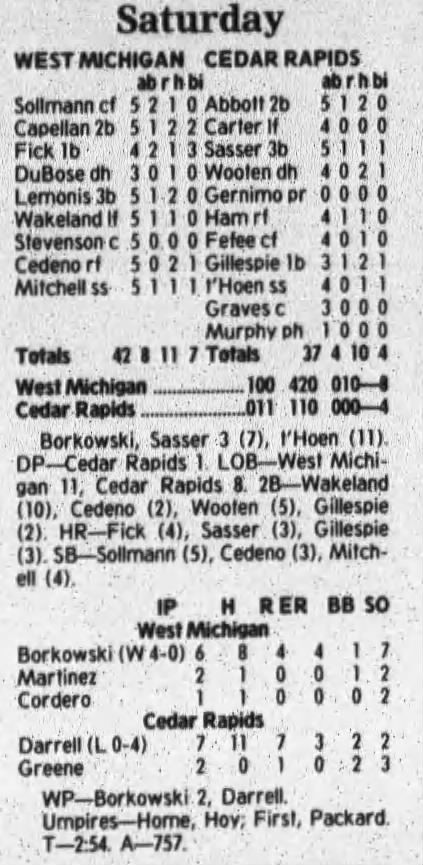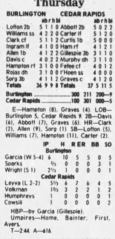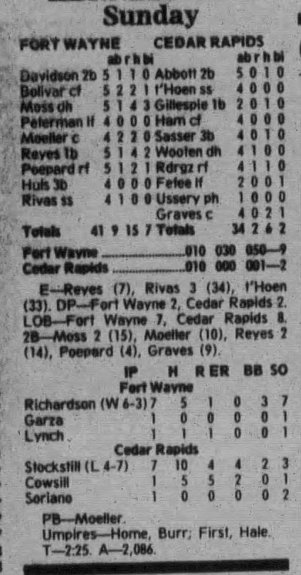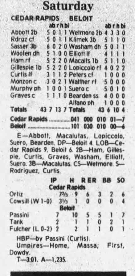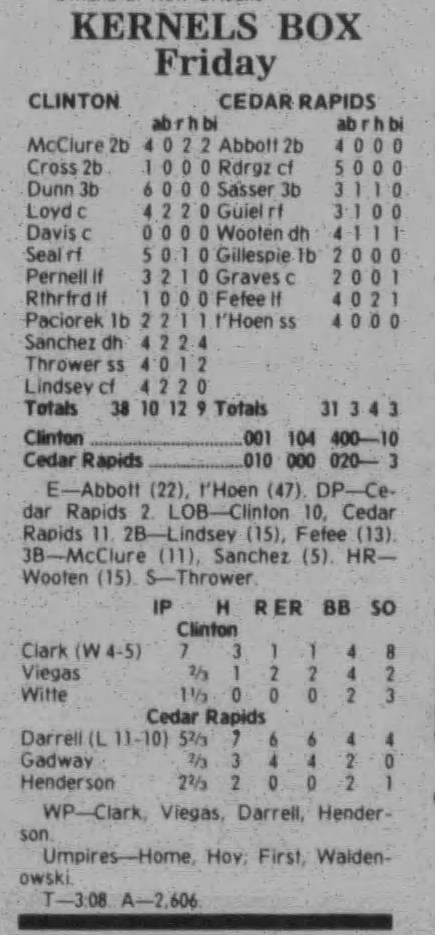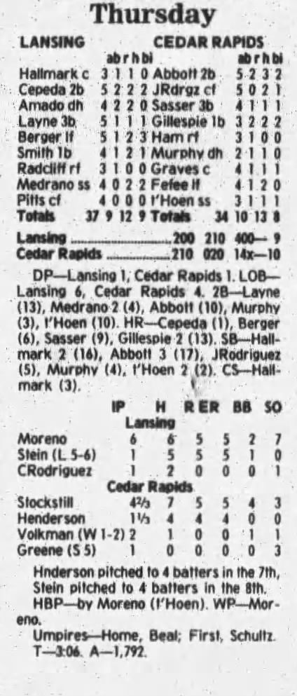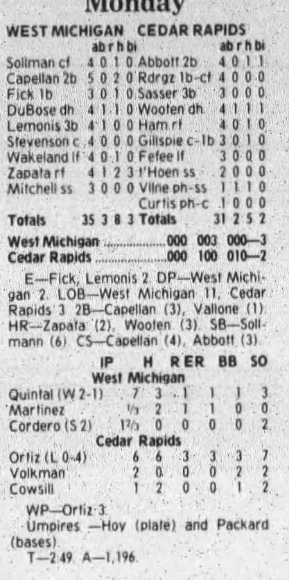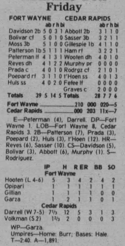 1997 Cedar Rapids Kernels box scores