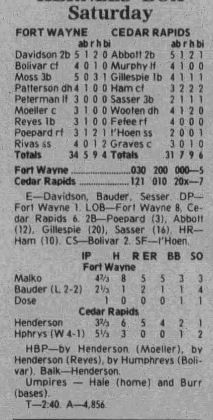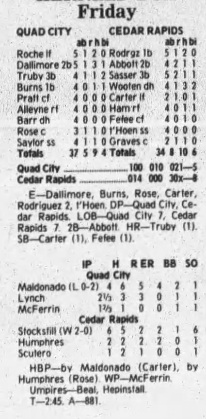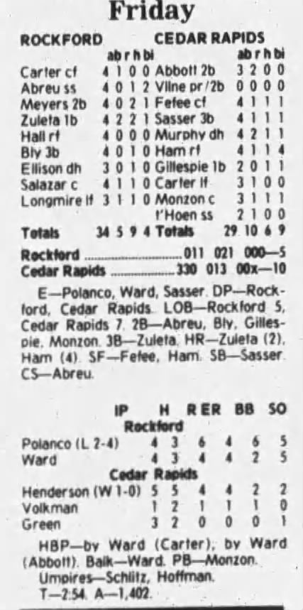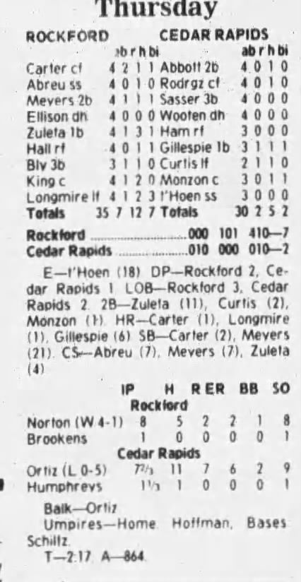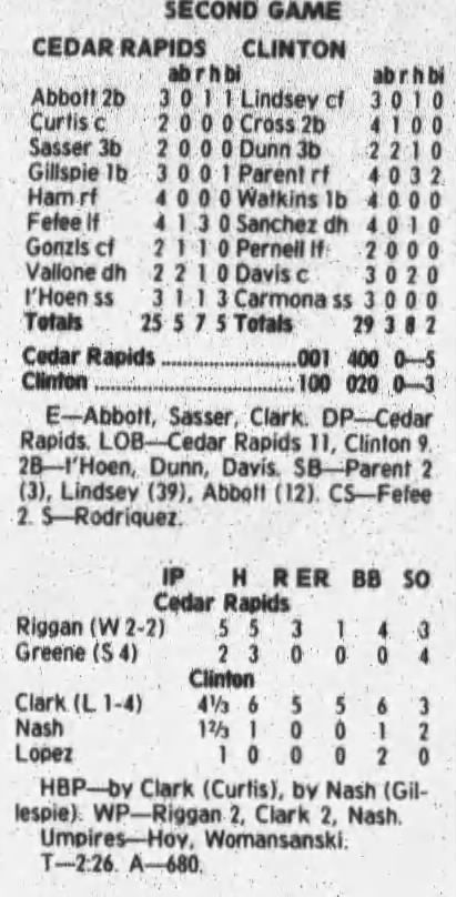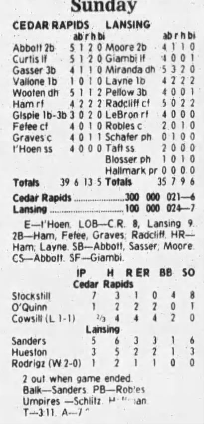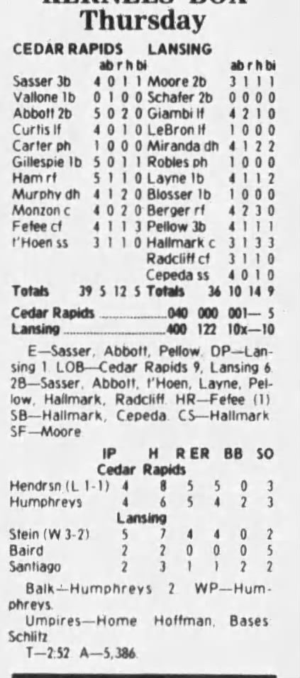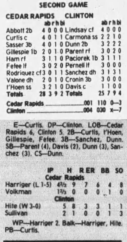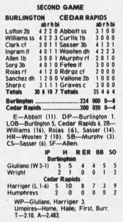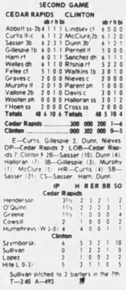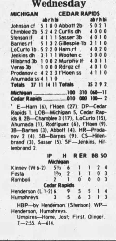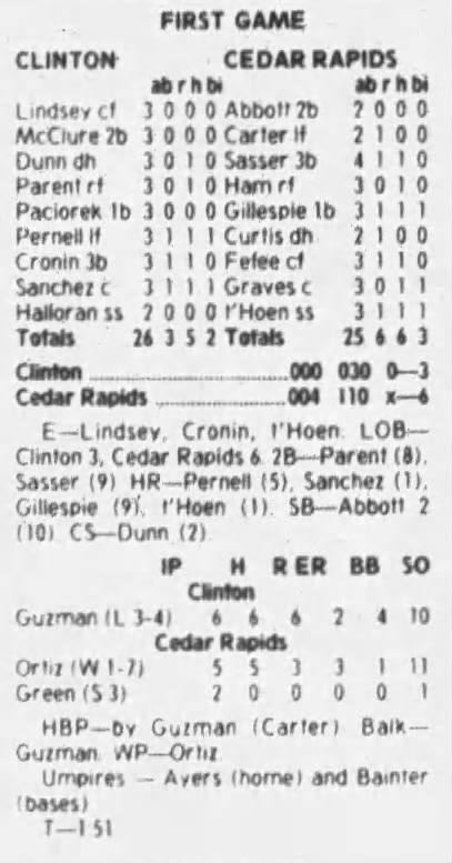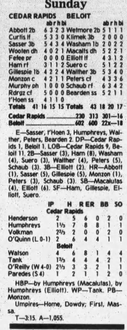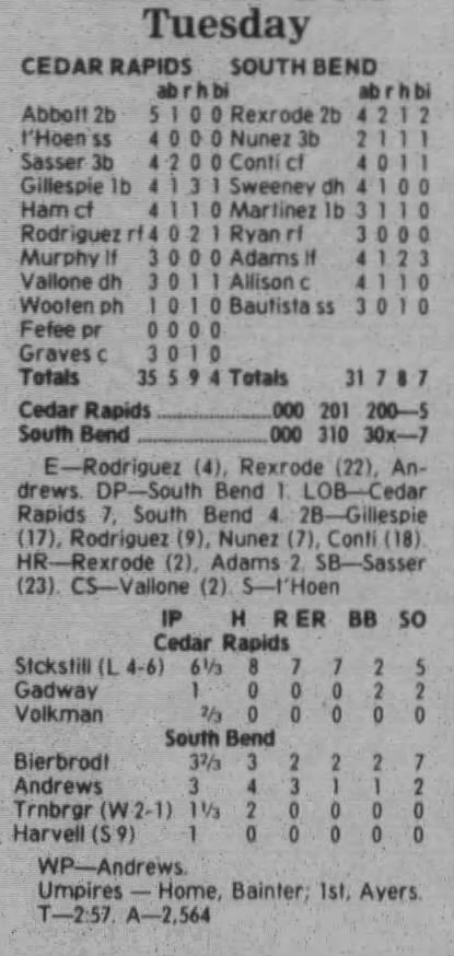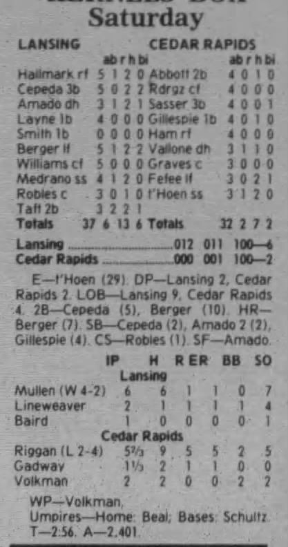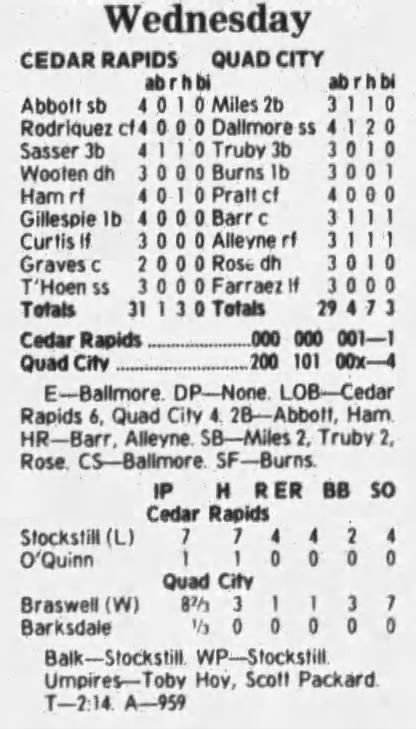 1997 Cedar Rapids Kernels box scores